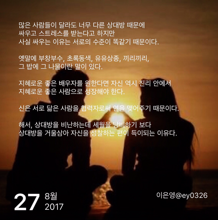 해서, 상대방을 비난하는데 세월을 낭비하기 보다 상대방을 거울삼아 자신을 성찰하는 편이 득이되는 이유다.