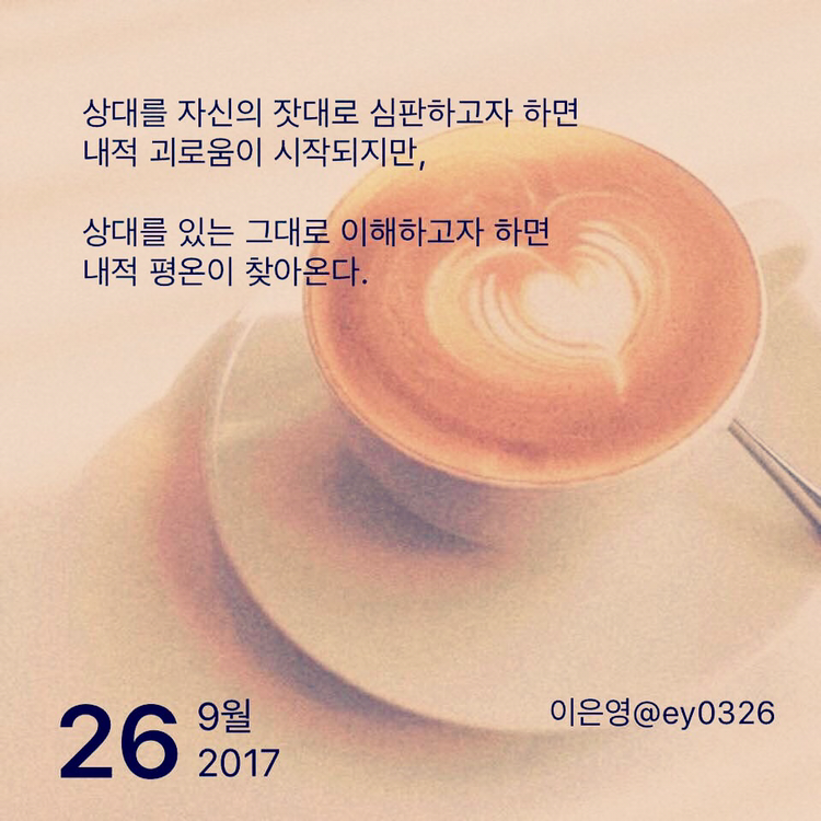 세상 그 누구도 서로를 완벽히 이해할 수는 없단다. 네가 상대방의 언행이 이해되지 않아 미쳐버릴 것 같을 때 | 사랑하는 얘야. 상대방의 모든 것을 이해하고자 노력하지 않아도 된단다. 그가 왜 그렇게 말하고 행동하는지 일일이 납득하려는 이해는 네 의도와 달리 사랑이 아닌 집착에서 시작함을 기억했으면 좋겠구나. 때문에 이해하려고 집착하면 할수록 점점 더 서로가 괴로워질 것이다. 진정한 이해란 상대방의 세계를 인정하는 겸손에서 시작된다. 사람은 저마다 고유한 삶의 경험이