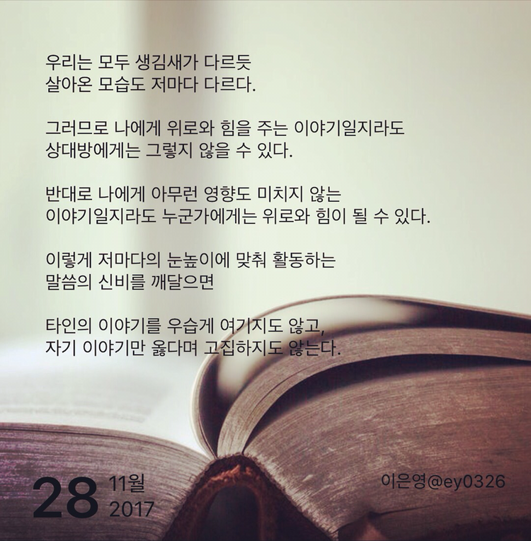 그러므로 나에게 위로와 힘을 주는 이야기일지라도 상대방에게는 그렇지 않을 수 있다.