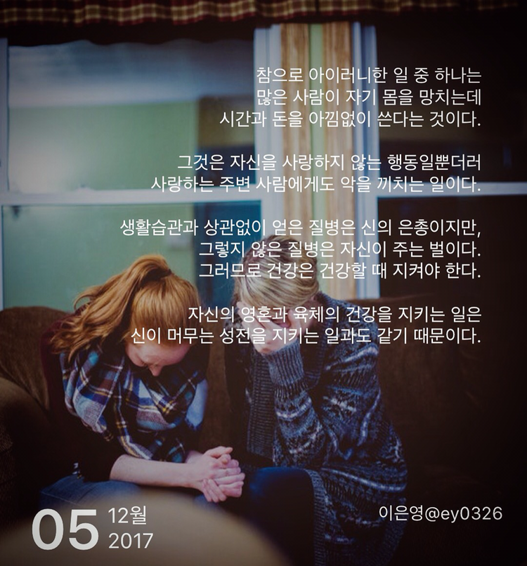 생활습관과 상관없이 얻은 질병은 신의 은총이지만,