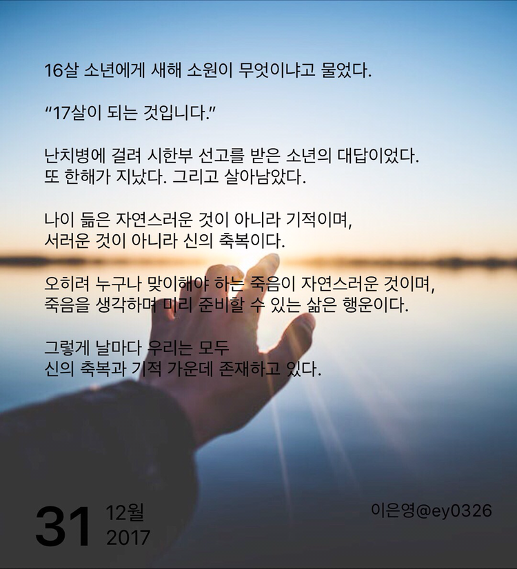 16살 소년에게 새해 소원이 무엇이냐고 물었다.