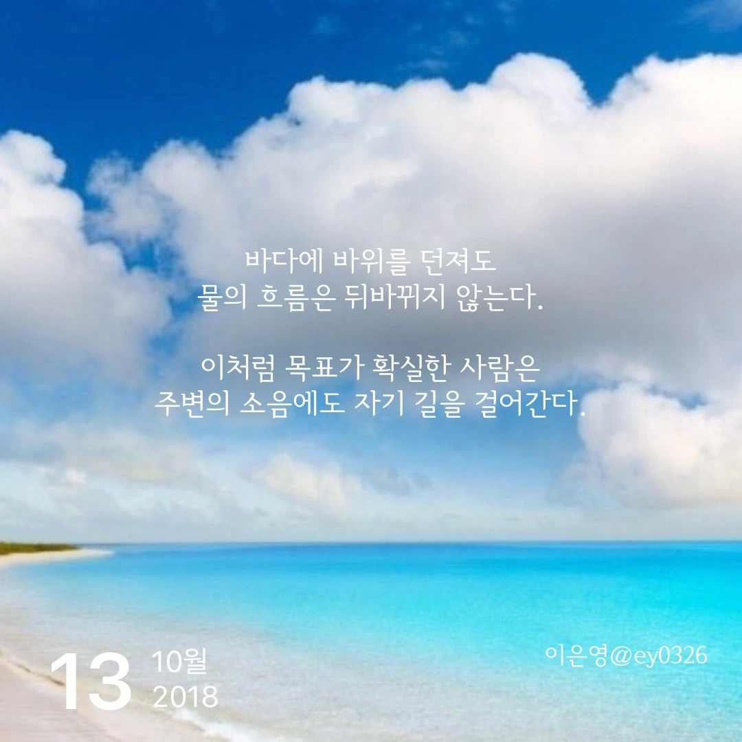 바다에 바위를 던져도 물의 흐름은 뒤바뀌지 않는다.이처럼 목표가 확실한 사람은주변의 소음에도 자기 길을 걸어간다.