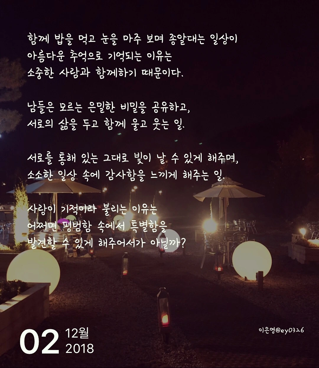 함께 밥을 먹고 눈을 마주 보며 종알대는 일상이