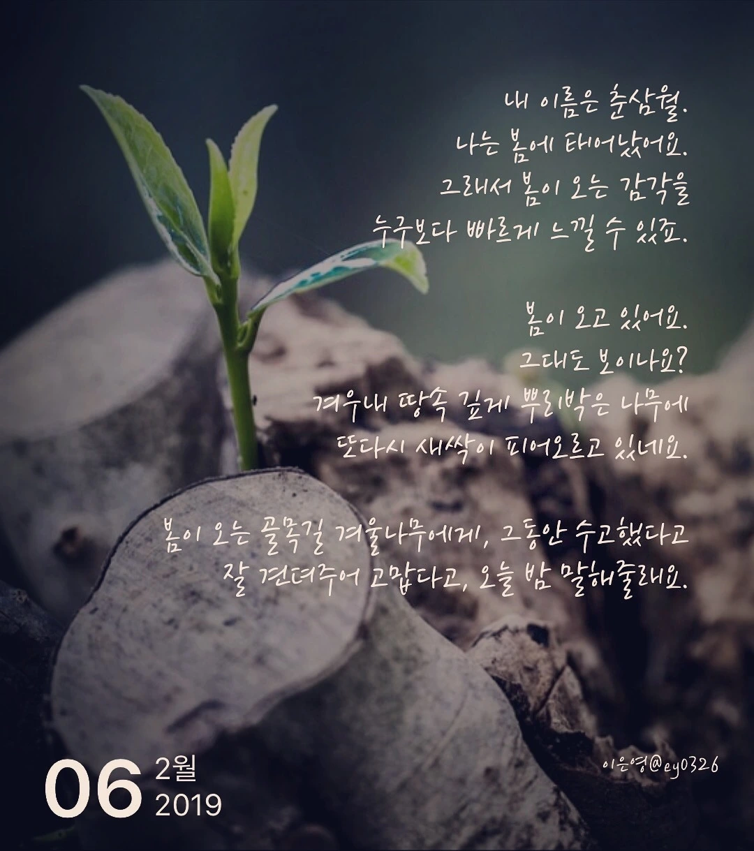 봄이 오는 골목길 겨울나무에게, 그동안 수고했다고 잘 견뎌주어 고맙다고 오늘 밤 말해줄래요.
