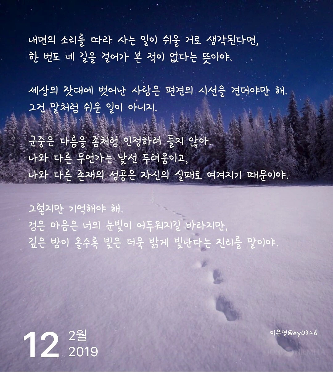 깊은 밤이 올수록 빛은 더욱 밝게 빛난다는 진리를 말이야.