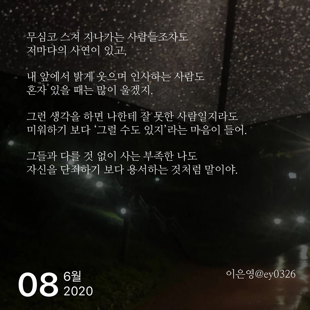 그들과 다를 것 없이 사는 부족한 나도 자신을 단죄하기보다 용서하는 것처럼 말이야.