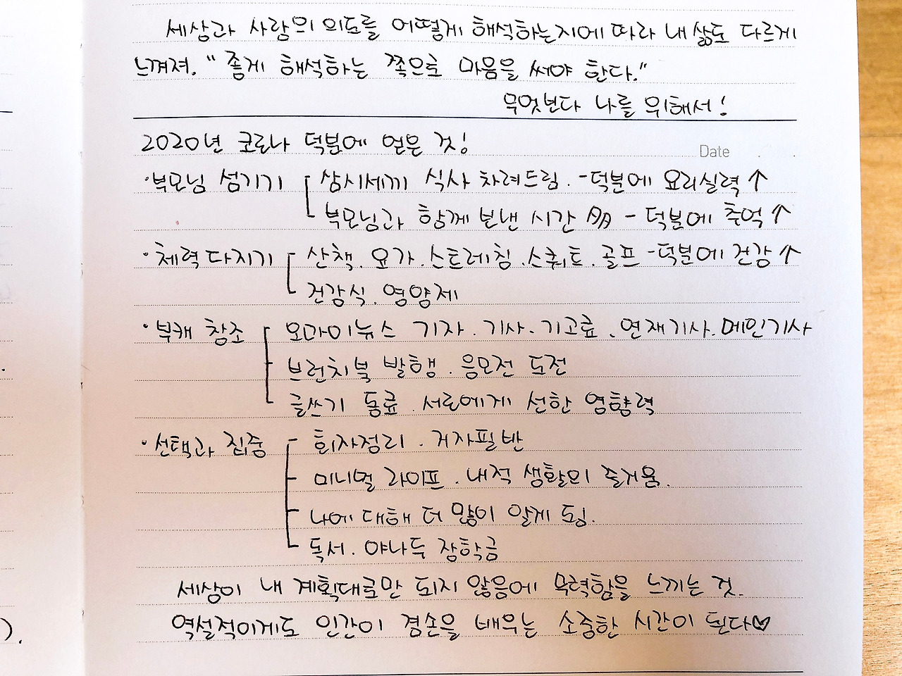 나는 멘털이 흔들릴 때마다 일기장을 펼쳤다. 하루에 3가지 이상은 반드시 감사 거리를 찾아 기록하고 잠들었다. 이러한 생활 습관은 종교적 가르침 때문만은 아니다.