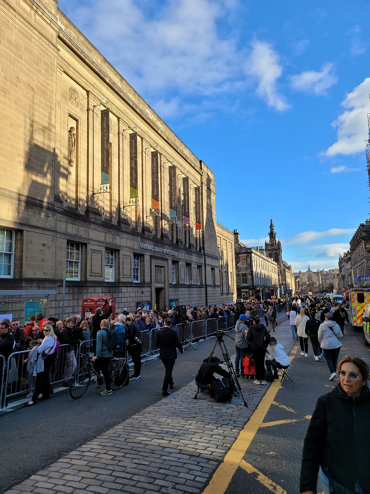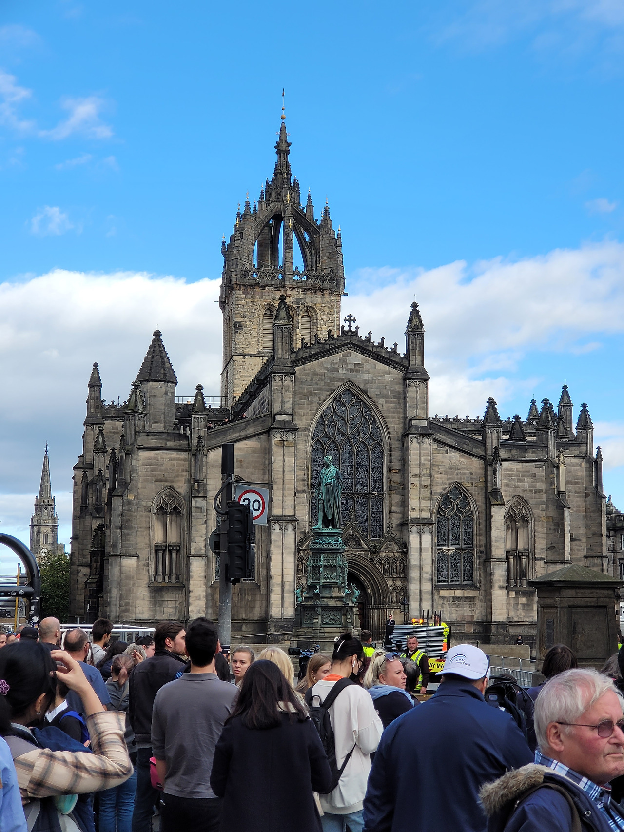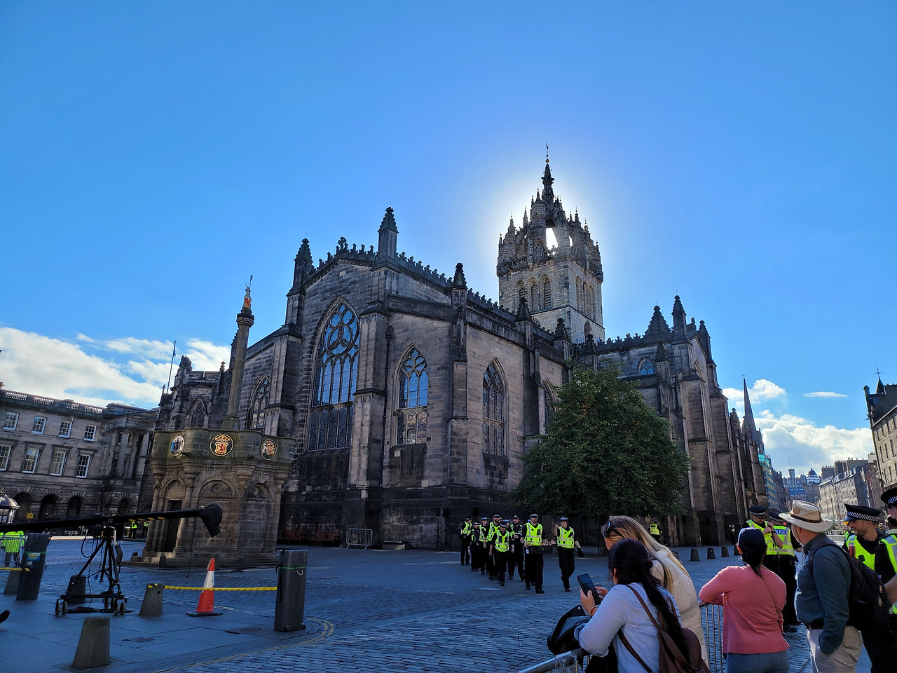 예상치 못하게 여왕이 스코틀랜드에서 타계하자 갑자기 에딘버러가 분주해졌다. 발모랄 캐슬에서 스코틀랜드 수도인 에딘버러로 관이 옮겨진 후에 이곳에서 장례 예배, 절차 등을 시작하게 된 것이다. 첫번째 장례 예배가 드려지고 조문객을 받게 되는 성자일스 성당(https://en.wikipedia.org/wiki/St_Giles%27_Cathedral)은 경비가 강화되고, 방송국들이 대거 들어오고, 가드레일이 곳곳에 세워졌다. 성자일스 성당은 늘 지나치면서 멋있다 생각하고 어떤 역사가 있는 곳인지는 몰랐는데, 덕분에 다시 보게 되었다.(성자일스 성당보다는 성자일스 성당 앞에 있는 자본주의의 아버지 '애덤스미스'의 동상을 더 의미있게 생각했었다.)