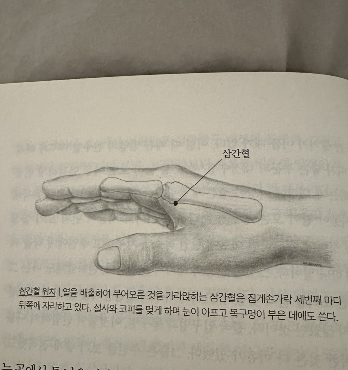 위치: 집게손가락 밑마디 앞 안쪽 우묵한 곳