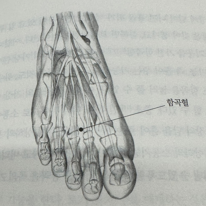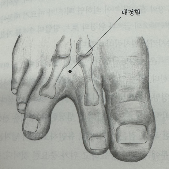 위치: 두 번째 세 번째 발가락으로 연결되는 뼈 안쪽 지점.