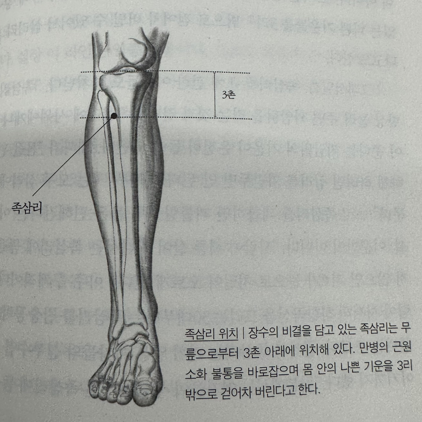 위치: 무릎아래 3촌 내려가 정강이뼈 바깥쪽 면 두 근육 사이 우묵한 곳
