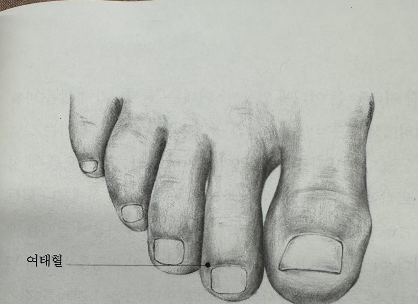 위치: 두 번째 발가락 바깥쪽 우묵한 곳