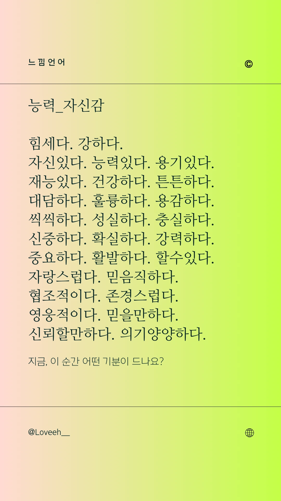 네 번째. 나의 언어로 표현이 안 된다면 '느낌 언어'에서 지금 느낌과 가장 가까운 것을 하나 고르기