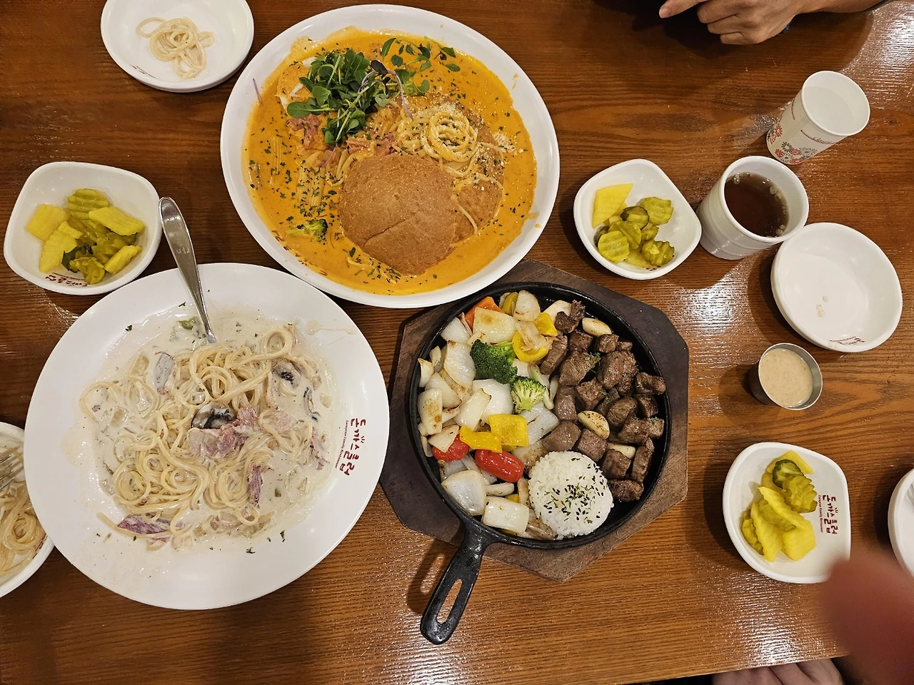 '까르보나라 스파게티, 빠네 로제 스파게티, 큐브 스테이크.. 그리고 사진엔 없지만 국물떡볶이 돈가스' 4개를 시켜 먹게 되었다. 맛은 흔히 알고 있는 그 맛. 딱 적당한 정도였다. 하지만 이번 식사는 조리원 이모님들께서 쏘시는 것 아닌가.. 난 최대한 텐션을 올려 '너무 행복하고 맛있다'는 뉘앙스의 말과 행동을 보여드리며 마지막까지 혼자서 남김없이 싹 긁어먹었다.