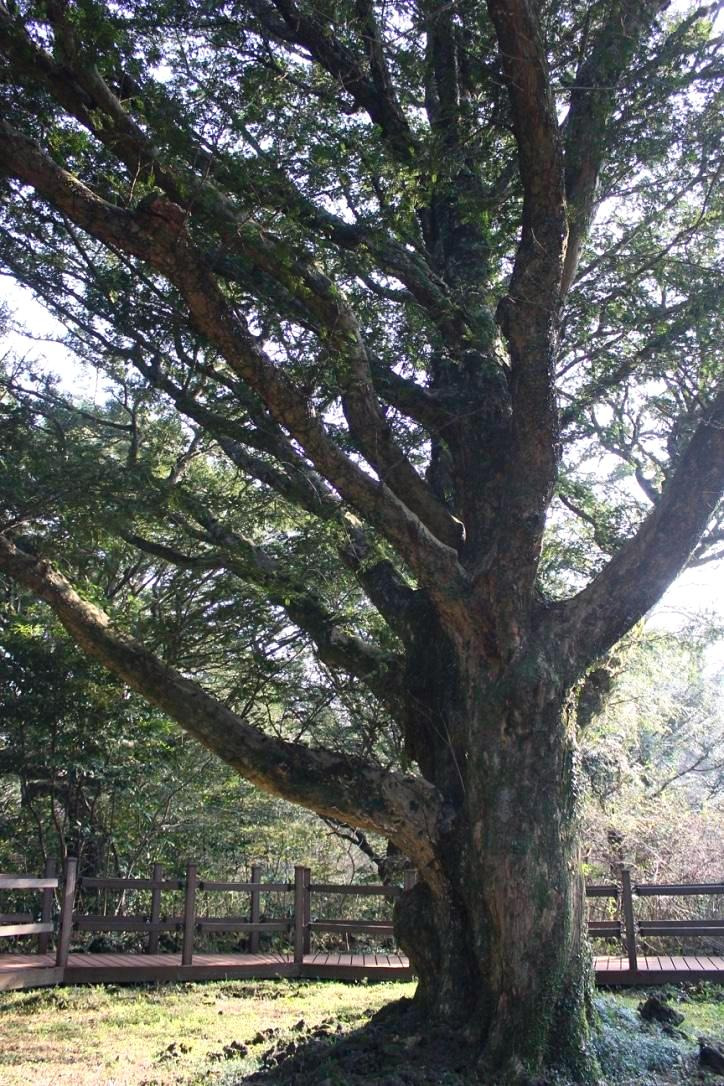 저녁때가 다 되어 이만 나가야 할 것 같았다. 때마침 갈림길이다. 나가는 곳과 천년 비자나무를 볼 수 있는 곳.
