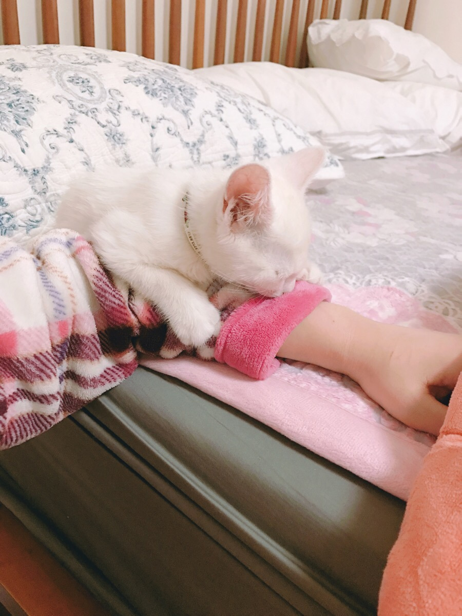 고양이를 첨 키워보는 나는 설렘 반 걱정반으로 퇴근 후 친구들과 모여 셋이서 별 이를 기다렸다. 팔 한쪽도 안되는 담요에 쌓여진 별 이를 안고 집으로 들어오는데 이렇게 작은 솜뭉치가 생명이 있는 건가? 싶을 정도로 작고 가벼웠다. 그런 내 맘을 아는지 모르는지 별 이는 정말 순하게 내 품에 안겨 집으로 들어왔다.