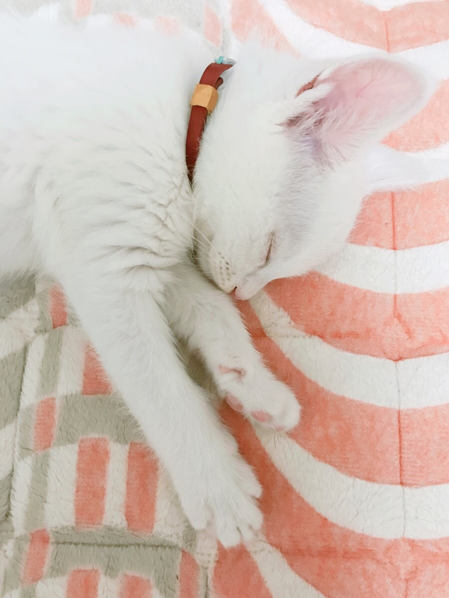 임보처에서 처음 올라오던 날 별 이의 발톱 길이는 최대치였다. 정말 길거리에서 당장 주워온 냥이처럼 태어나고 한 번도 깎지 않은 것처럼 보였다. 병원 방문 첫날 손톱 깎기에 오랜 길거리와 임보 생활 덕분에 별이 귀에 그득 하던 진드기와 청소. 주사까지. 첨 겪어 보는 상황에 별 이는 집에 오자마자 그야말로 “떡실신” 의 정석을 보여주었다.