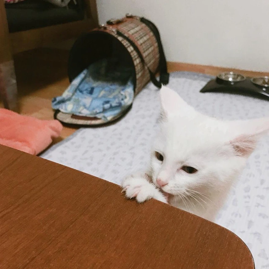 이빨질이 너무 심해, 몇 개월간 손등이 남아날 일이 없었다. 아기 때 안된다고 가르쳐야 한다길래 너무 세게 물면 혼 내키곤 했는데 이때 별 이는 정말 최고의 냥린이 시절이라 혼을 내면 두더지처럼 빠른 스피드로 도망가서 날 저렇게 쳐다보곤 했다.