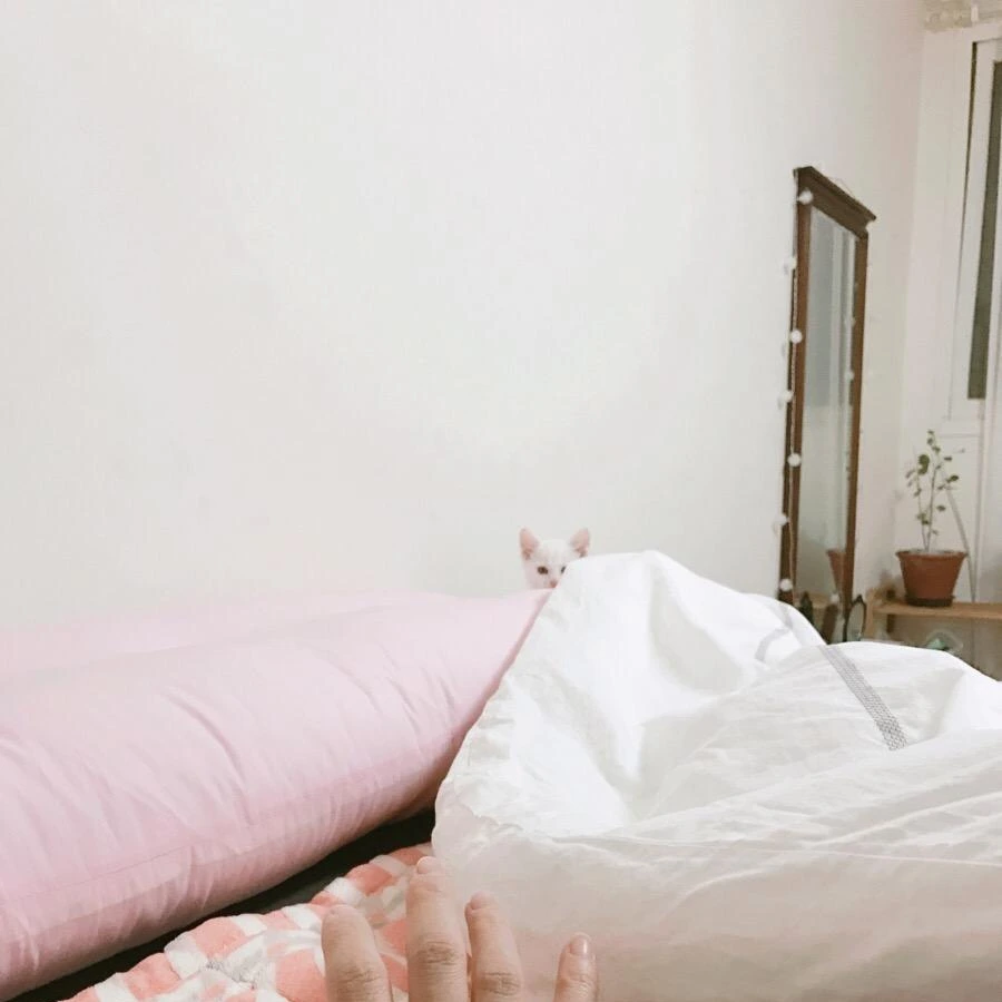 1년이 지난 지금도 별 이는 매일 아침 5시~6시 사이 나에게 와서 쭙쭙이를 한다. 겨울이건 여름이건 나는 저 수면잠옷을 준비해두고 잠결에 별 이가 침대로 올라와 베개를 깔고 앉아서 " 뭐 해 나왔잖아 엄마, 빨리 손을 내밀라"라는 표정으로 쳐다보고 있으면 주섬주섬 잠옷을 입고 내어준다. =_= 가끔은 혼자 조용히 베개로 올라와 골골송을 부르고 있다. 잠결에 어디 귓가에서 골골송이 맴돌면 어김없이 별 이가 다가와 있는 것이다. 그 소리도 못 듣고 내가 못 일어나는 날엔 앞발을 그냥 움직이는 척 조용히 얼굴에 갖다 댄다. 어디선가 뜨뜻한 느낌이 들어 깨보면 별 이가 입맛을 다시며 날 쳐다보고 있다. 5센티미터 거리에서.