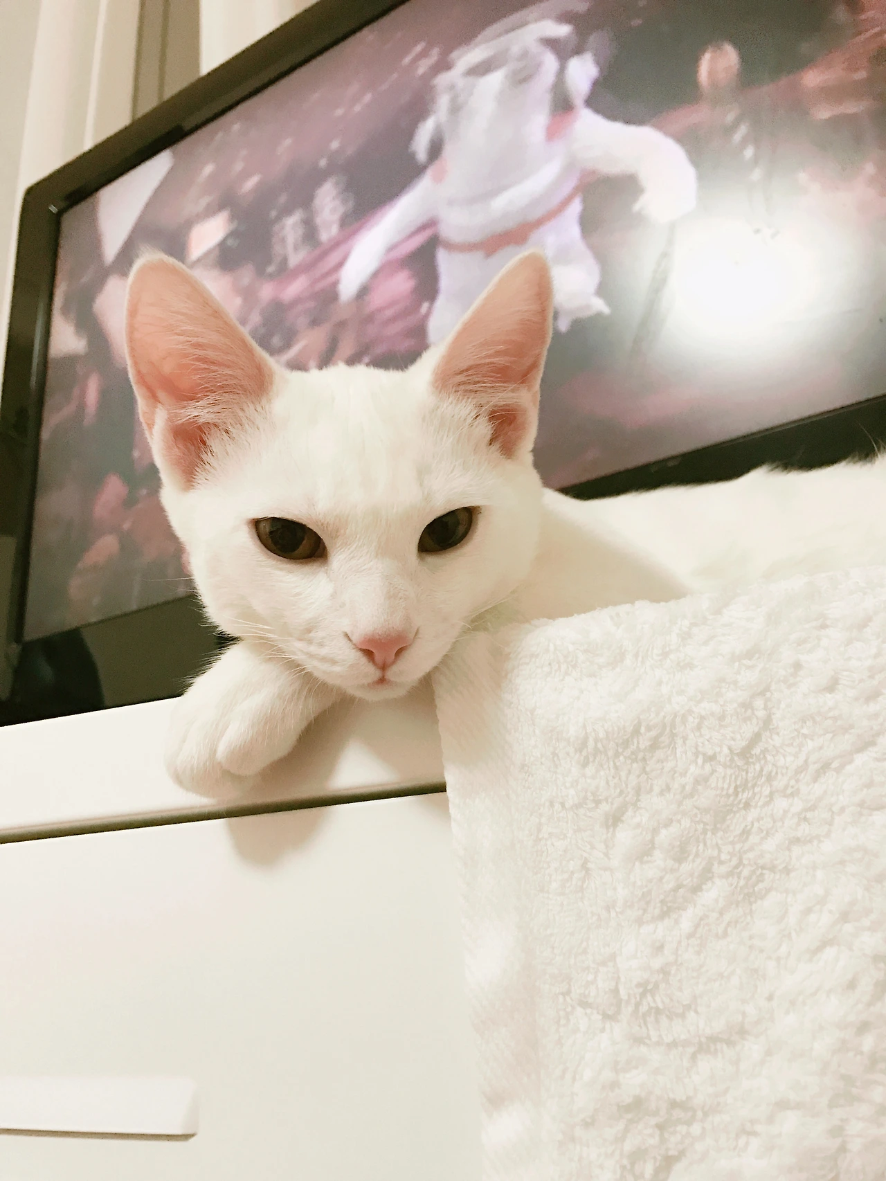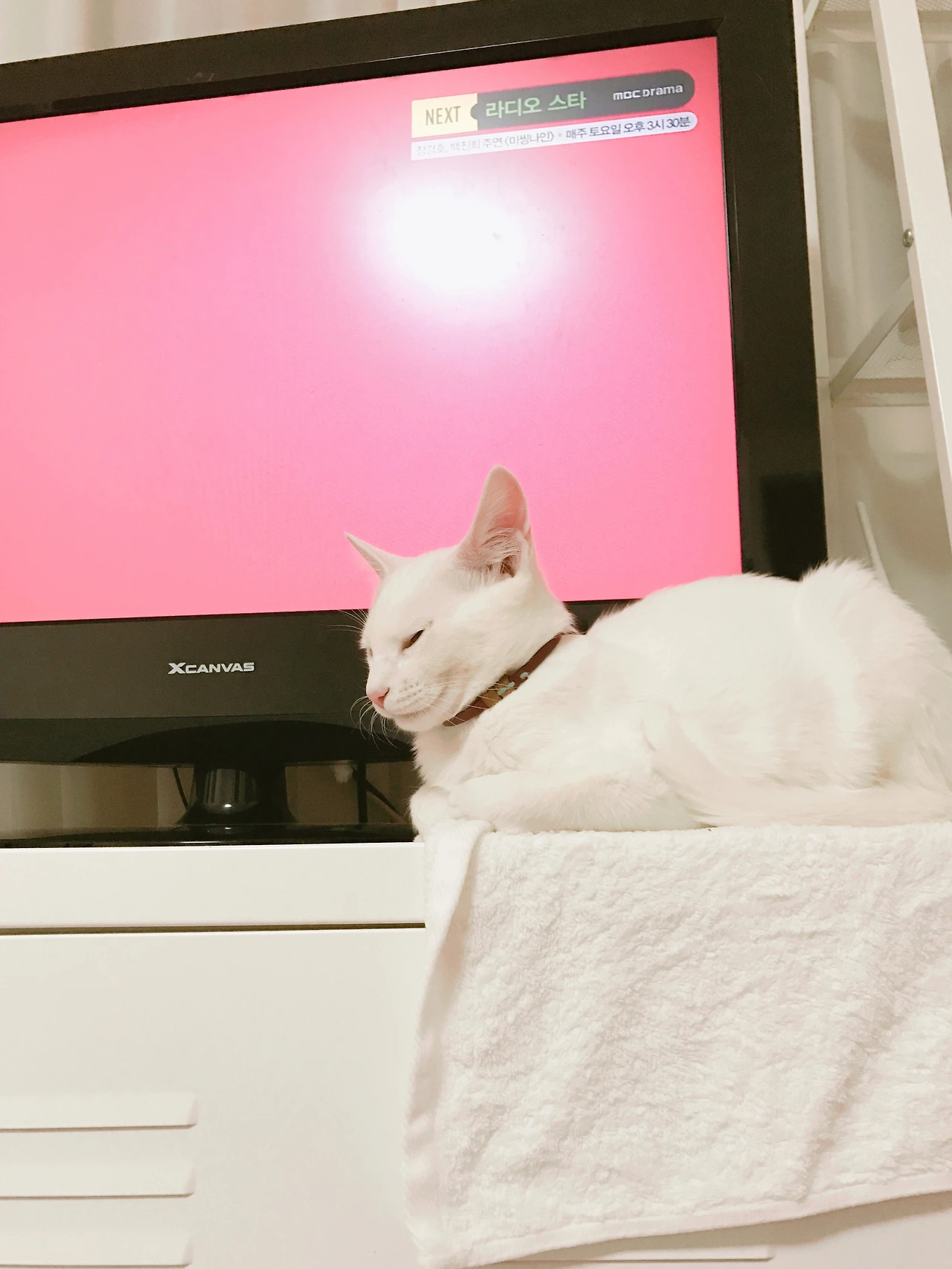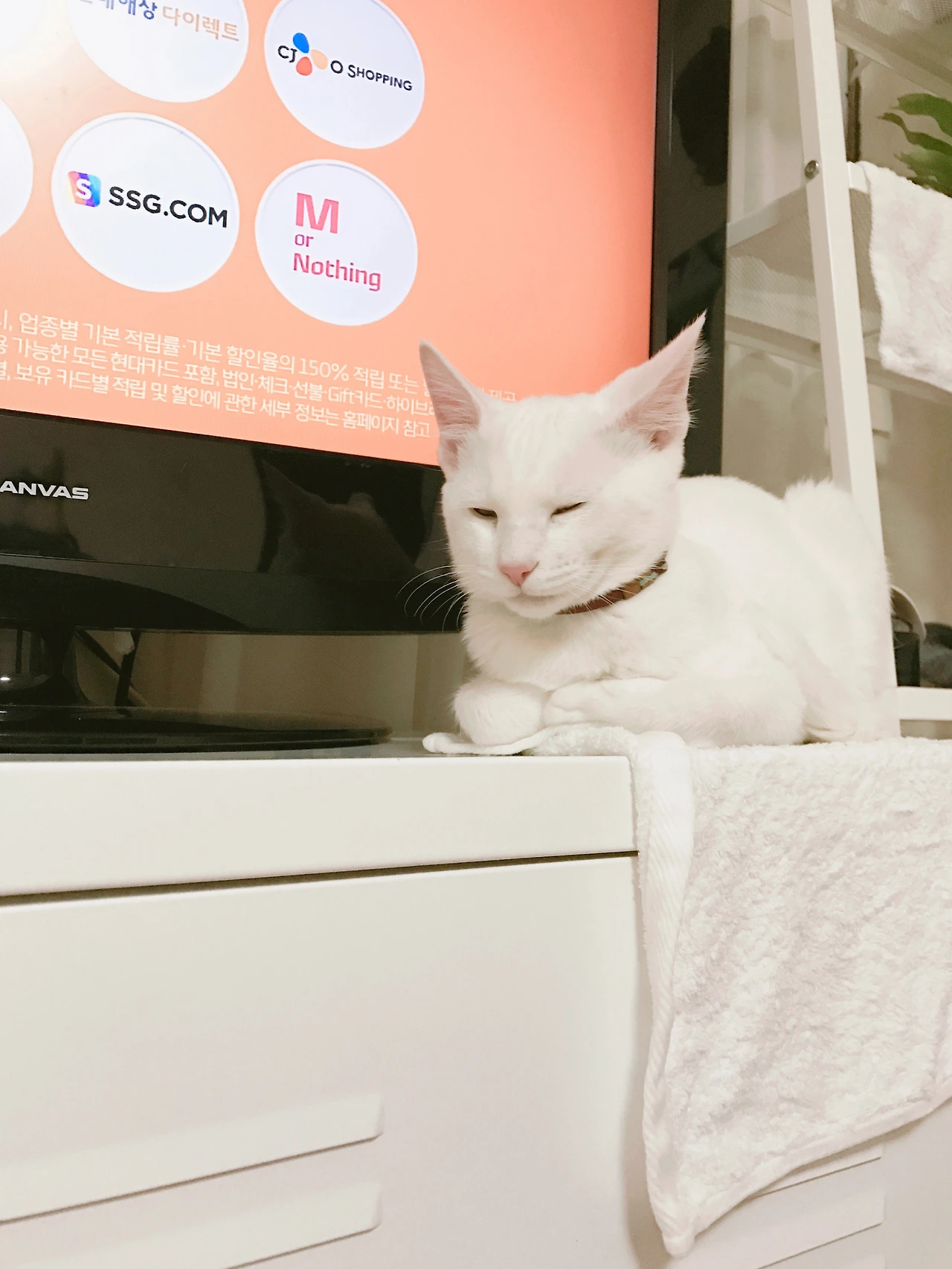고양이의 질투는 참 신기하다. 내가 저 알수없는 네모난 박스만 계속 보고있으면 별이는 보란듯이 티비장위로 올라와 저렇게 시야를 가린체 눈을 잔뜩 찢고 잠을 자는척 한다. ;;
