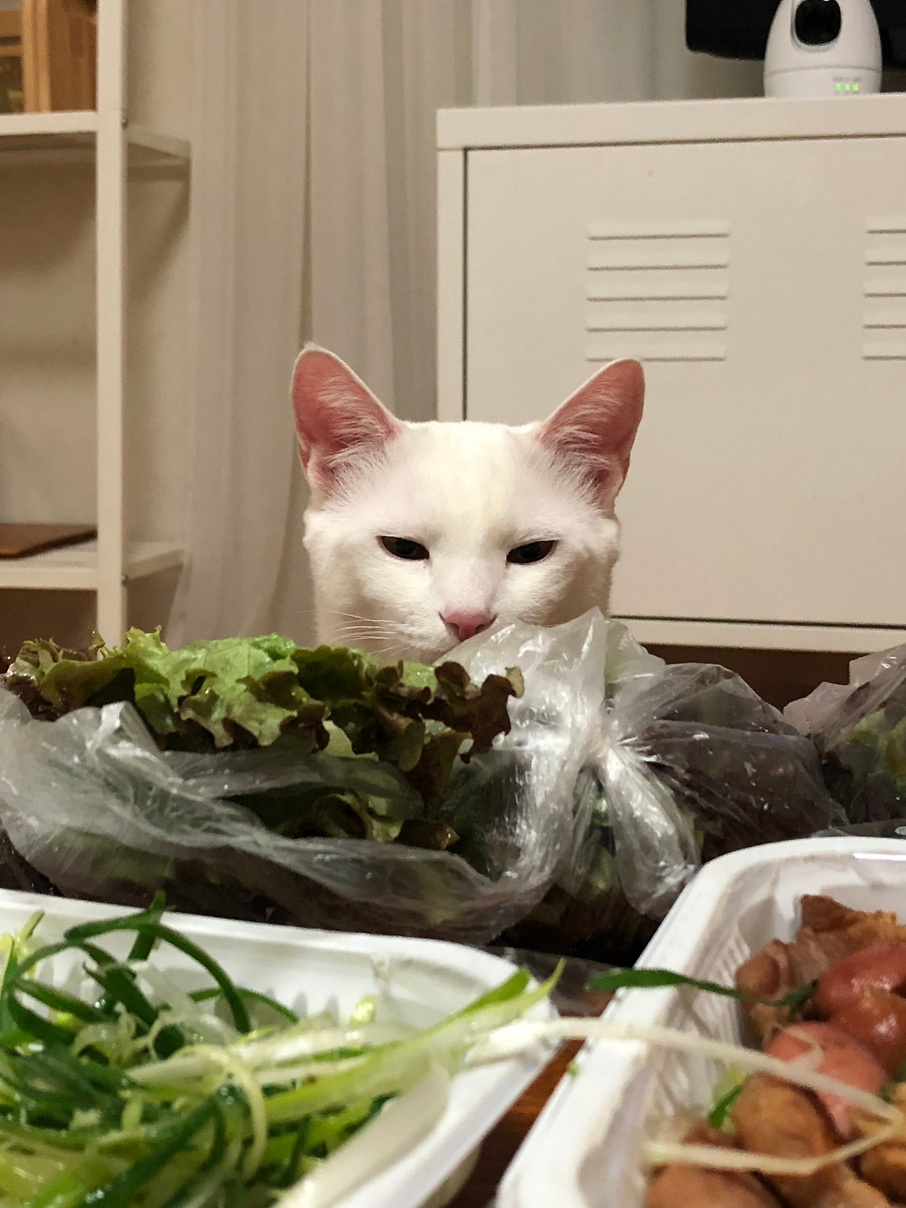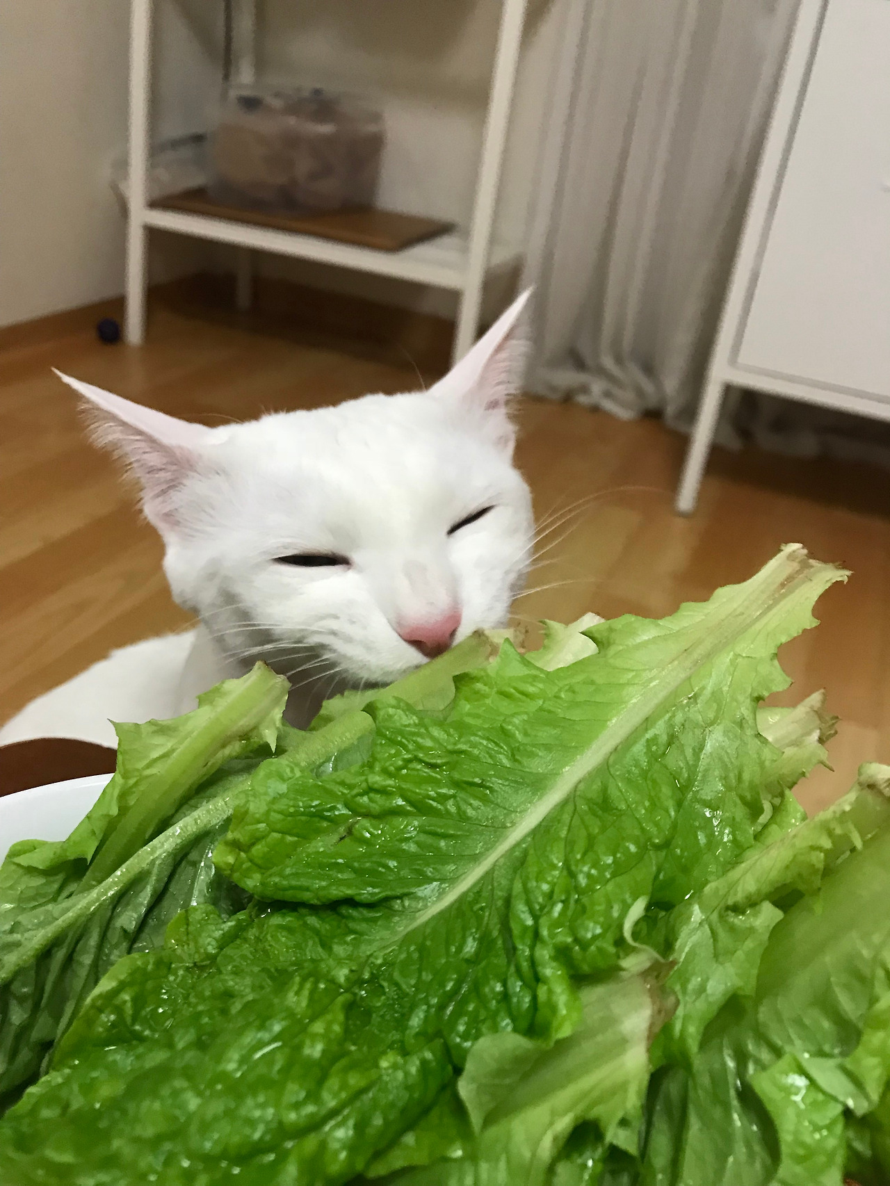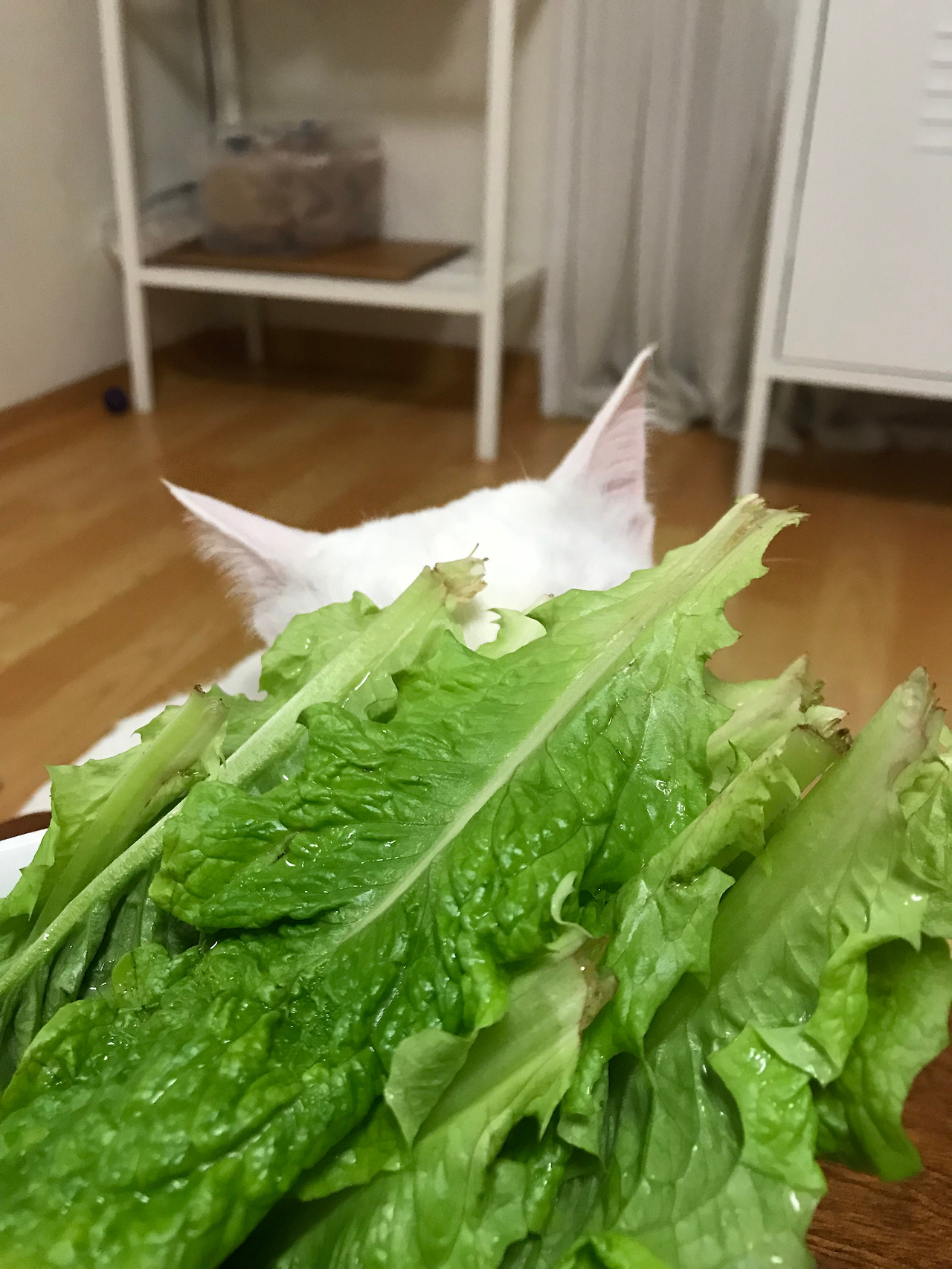 너무 뻔뻔하게 내 상추를 씹어먹고 있네.