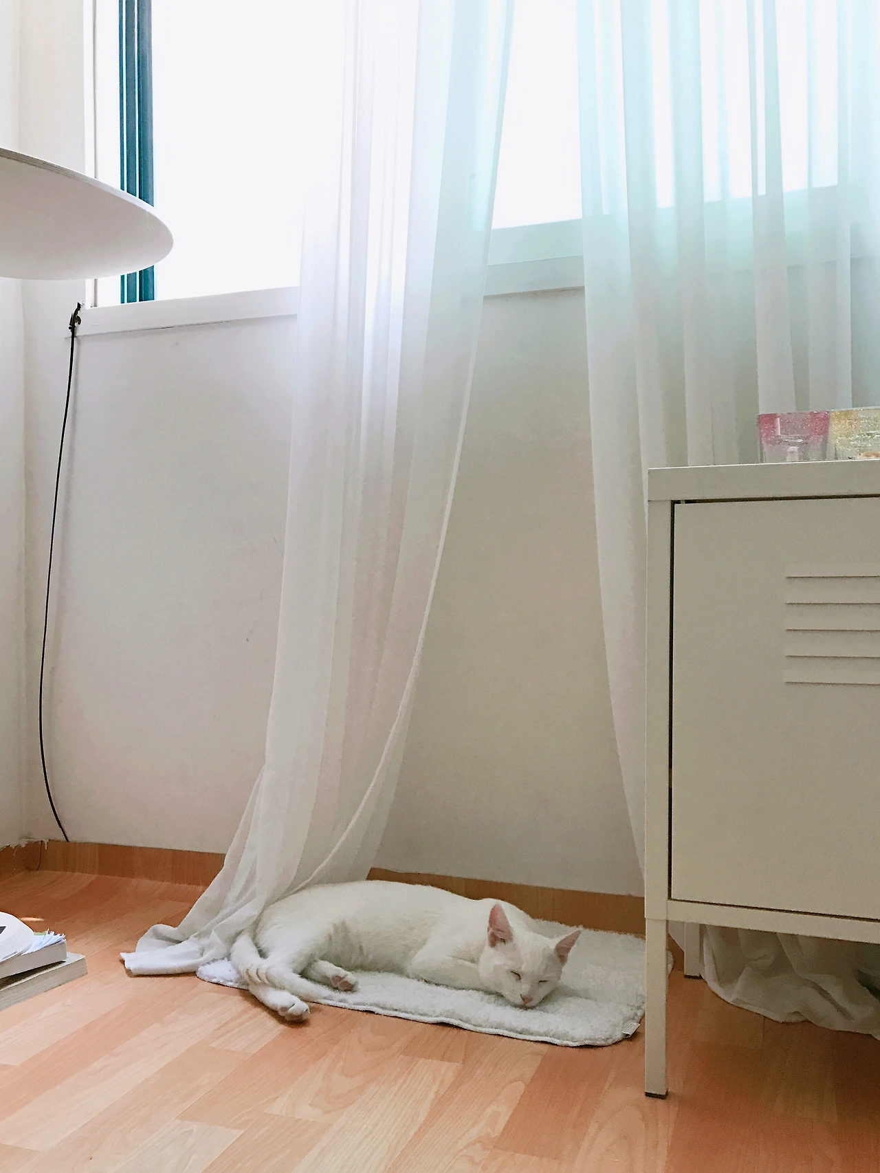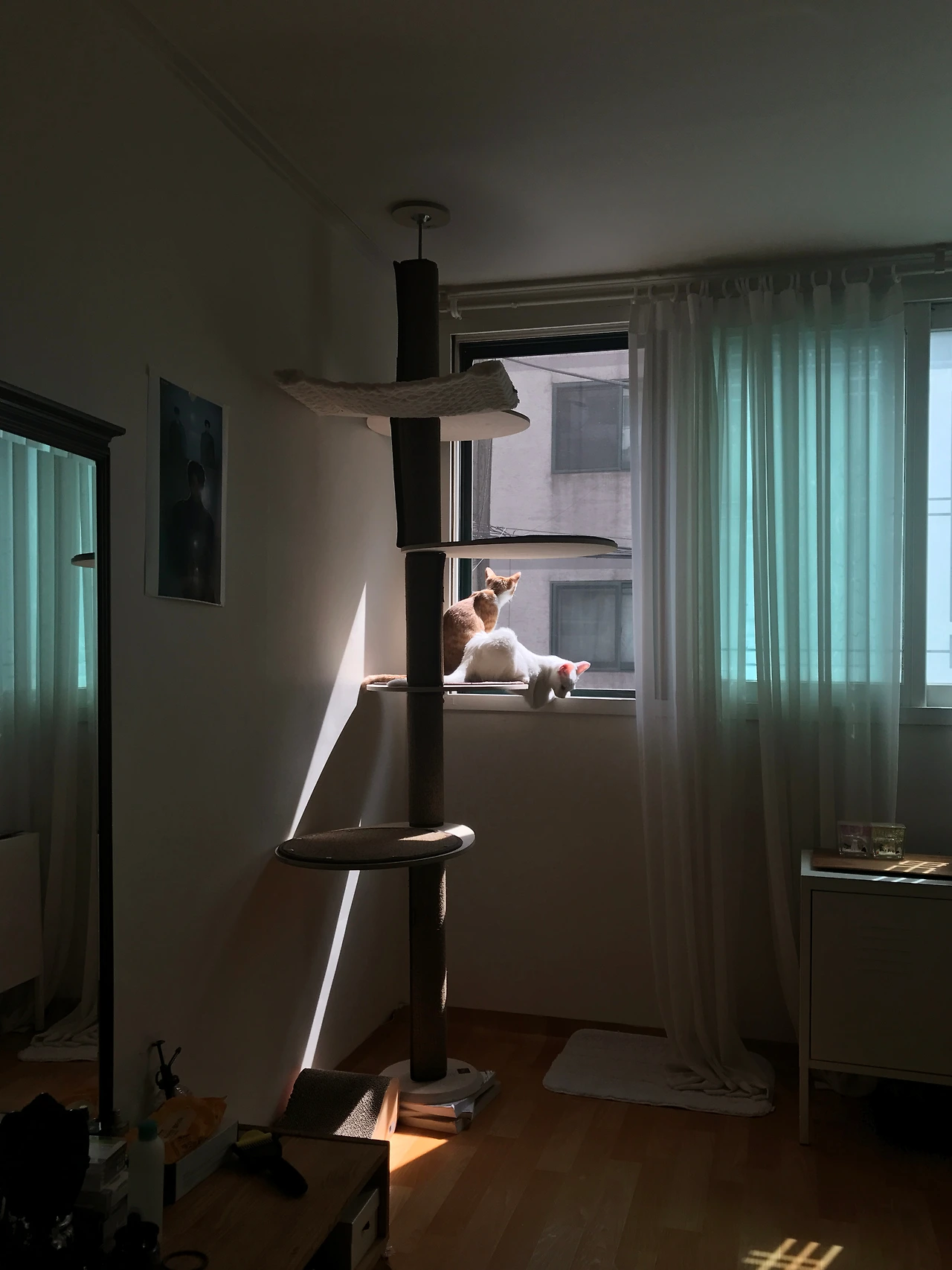 별이역시, 달이와 함께하는 공간에서 본인만의 자리를 스스로 찾으며 "영역동물" 의 본능을 스스로 해결해 가고 있다.