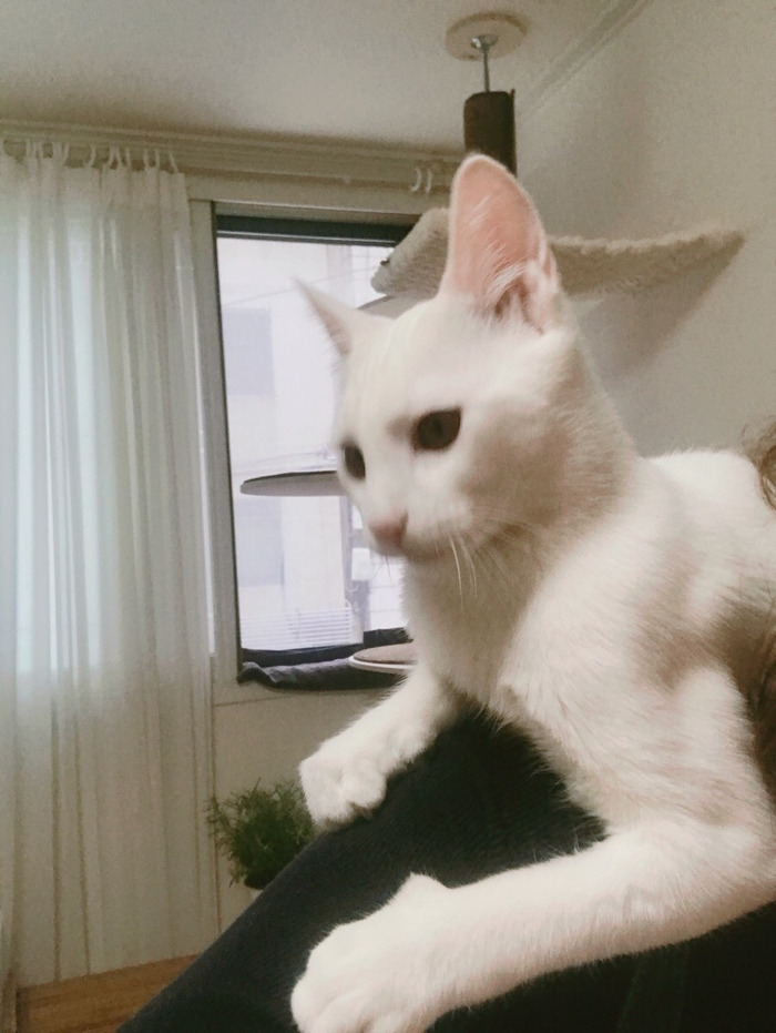 아, 딱 한 명 별이가 유난히 맘을 열고 좋아하는 이모가 있는데 그 이모는 별이가 처음 저에게 오던 날 저와 함께 집에서 별이를 기다려준 이모 중 한 명이에요. 별이가 집에 오고 20여 분 만에 침대 밑에서 나오고 방을 돌아다닐 때 가장 처음으로 얇은 리본으로 놀아준 사람이에요. 고양이는 참 신기하죠.