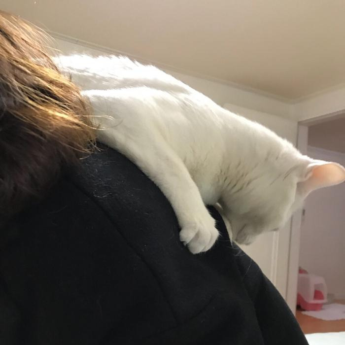 그 기억이 별이에겐 오랫동안 남아있나 봐요. 그래서 그 이모가 오면 애기때는 저를 버려두고(?) 이모 앞에서 깨발랄을 떨며 자기도 하고 이모가 만져도 화를 내지 않더라고요. 저의 재미진 고양이 별이의 어깨냥이 사진 모음 대방출할게요. 잠시 쉬어가는 재미난 사진이 되면 좋겠어요 :D