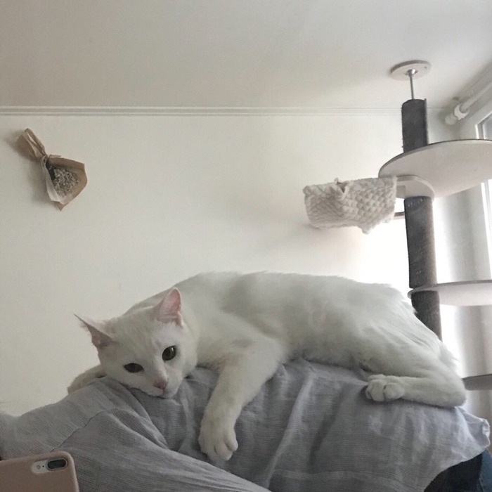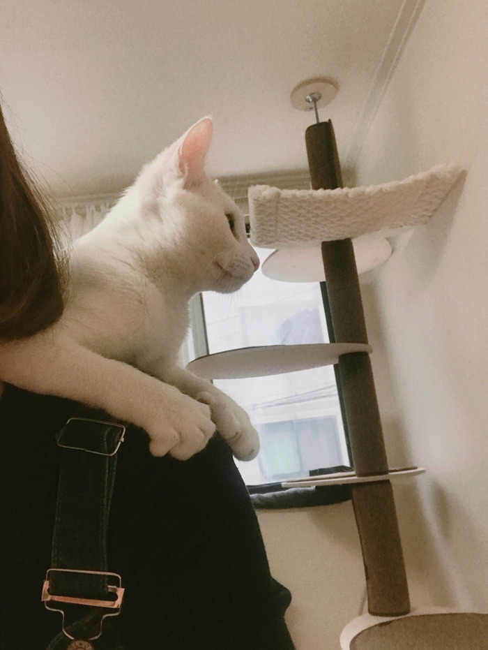 그래서 그런지 높은 곳을 좋아하는 고양이의 특성을 별이도 그대로 가지고 있었고, 애기때는 체구가 워낙 작은지라 내 어깨를 발판 삼아 잘도 올라왔다. 퇴근하고 돌아오면 반갑다고 내 종아리부터 캣폴 오르듯이 발톱을 세우고 어깨까지 올라왔다.