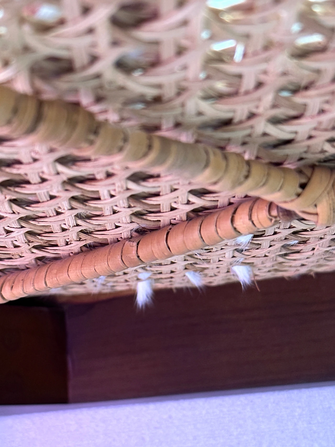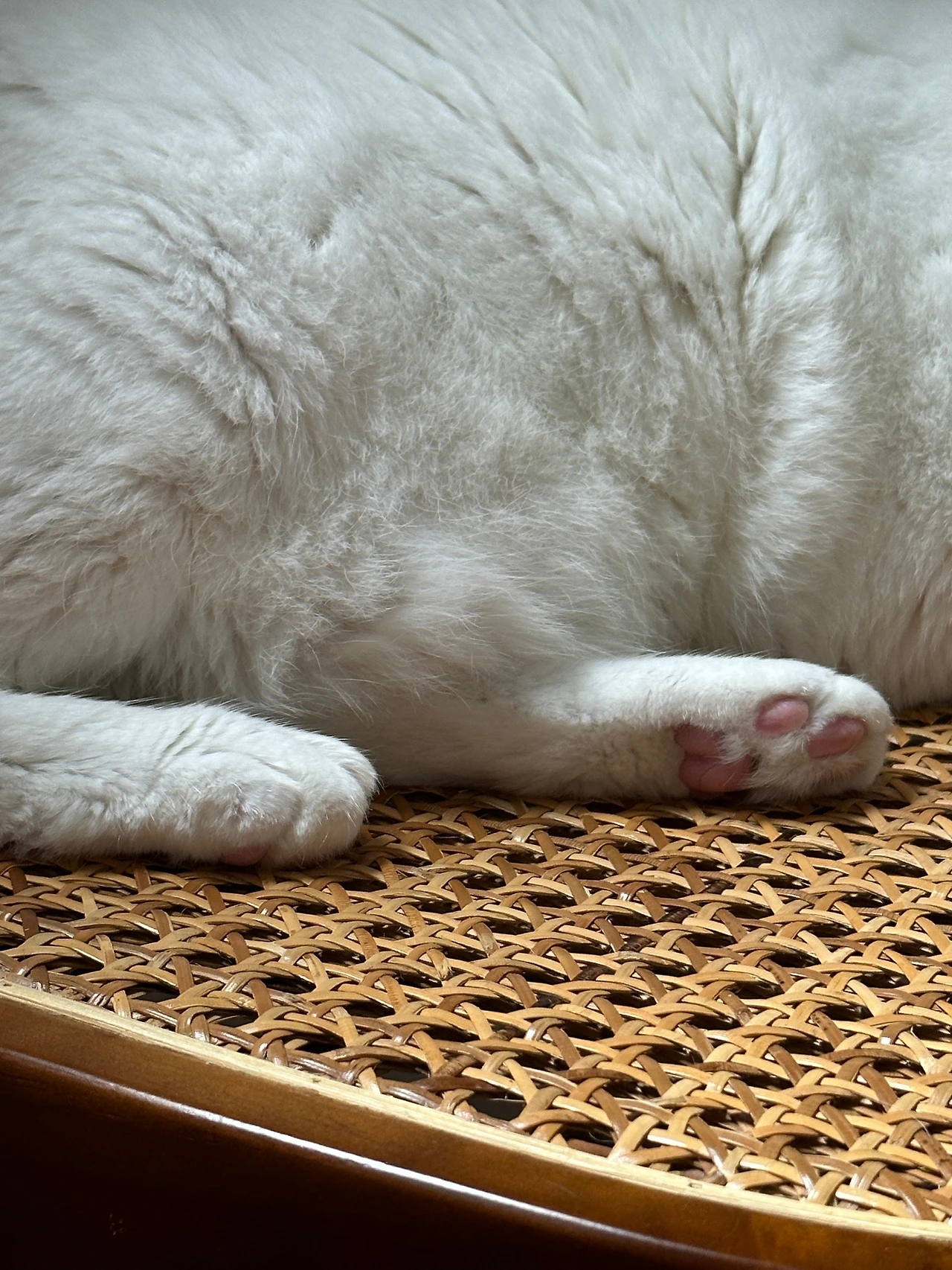 우리 집 식탁의자는 오래된 라탄 스타일인데, 별이의 털이 사이사이 삐져나와있어. 너무 귀여워 >. <