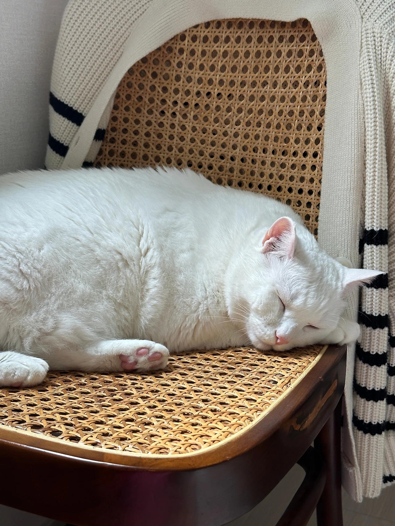 오늘은 창가에 가져다 둔 의자 위에서 종일 잠을 청할 모양.
