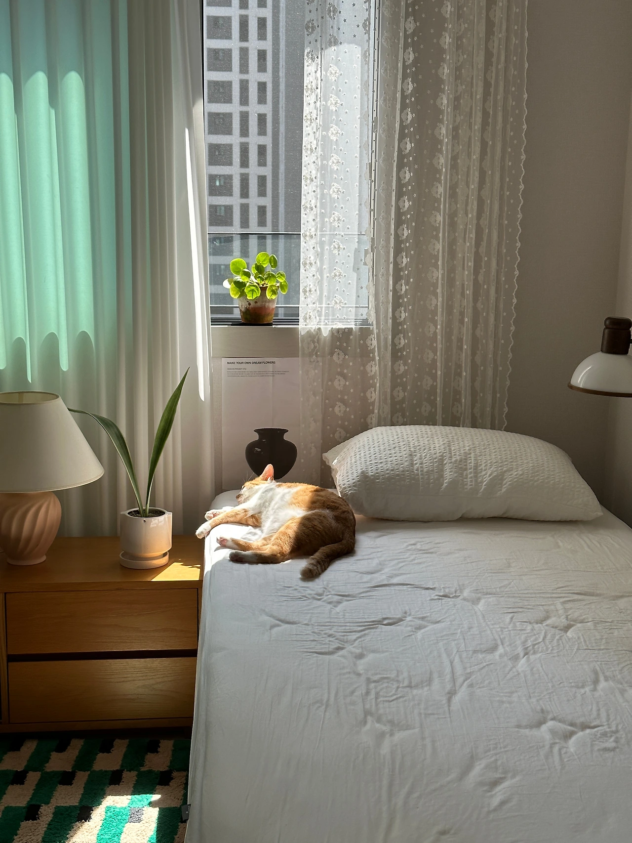 열려진 창문으로 들어오는 햇살을 참 좋아하는 달이 -