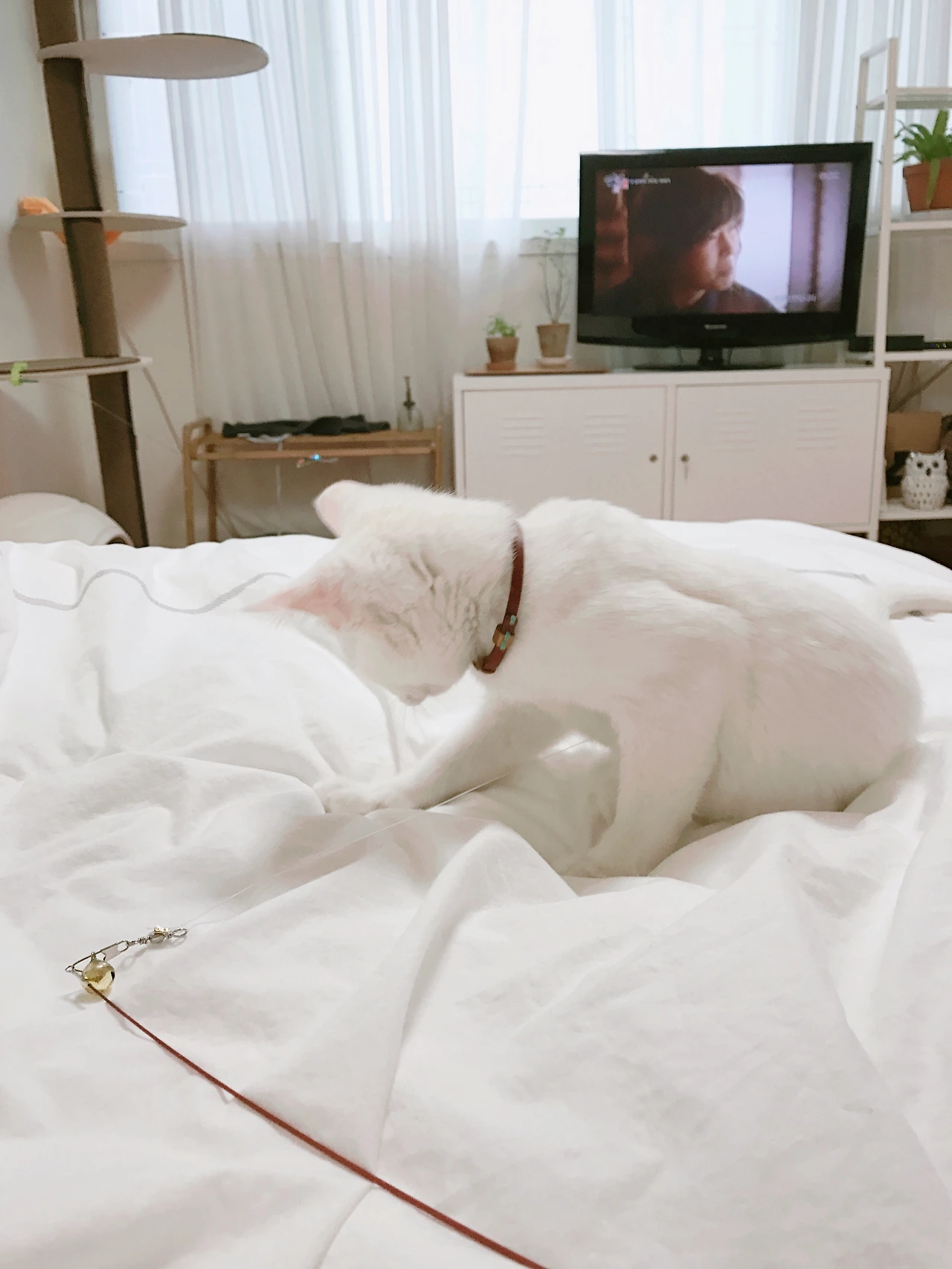 드라마가 끝나기 전까지니까 약 40~45분정도 별이와 안방부터 현관문까지를 같이 뛰어다니며 놀았어요.