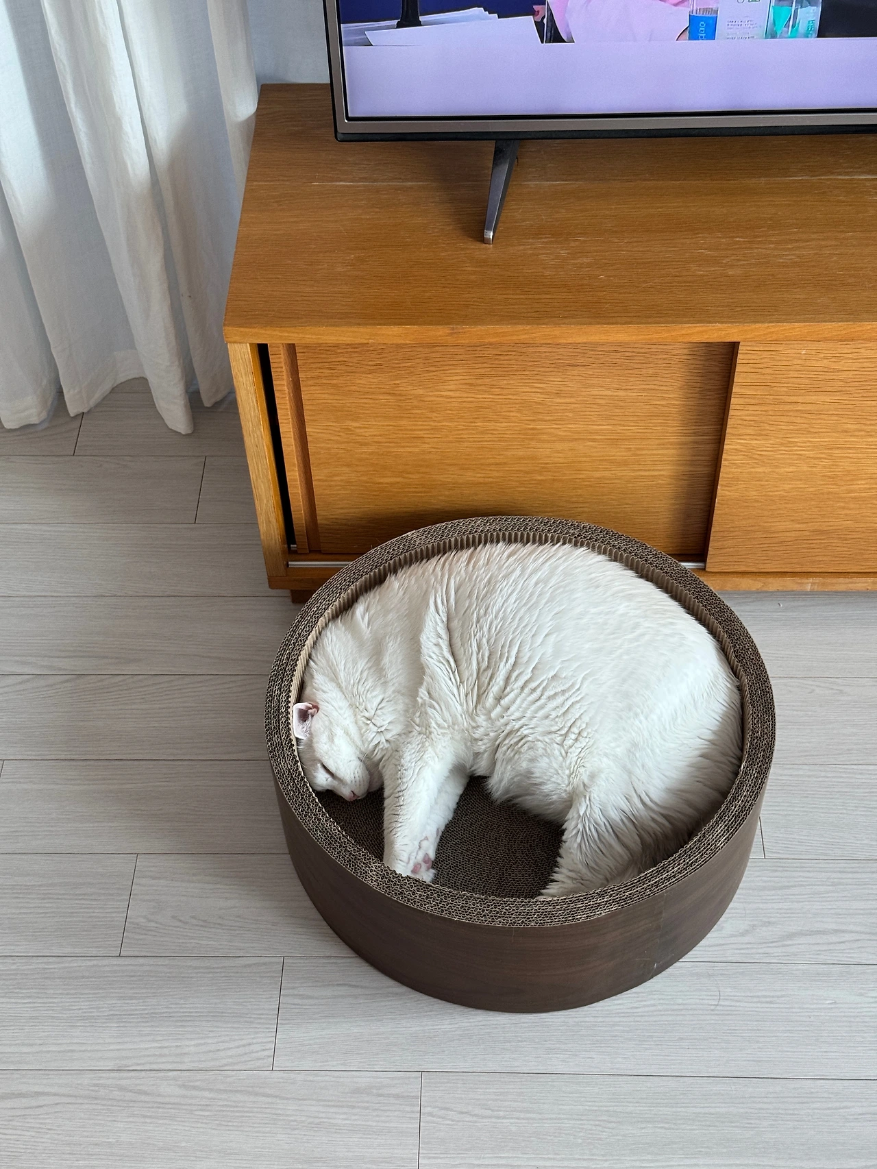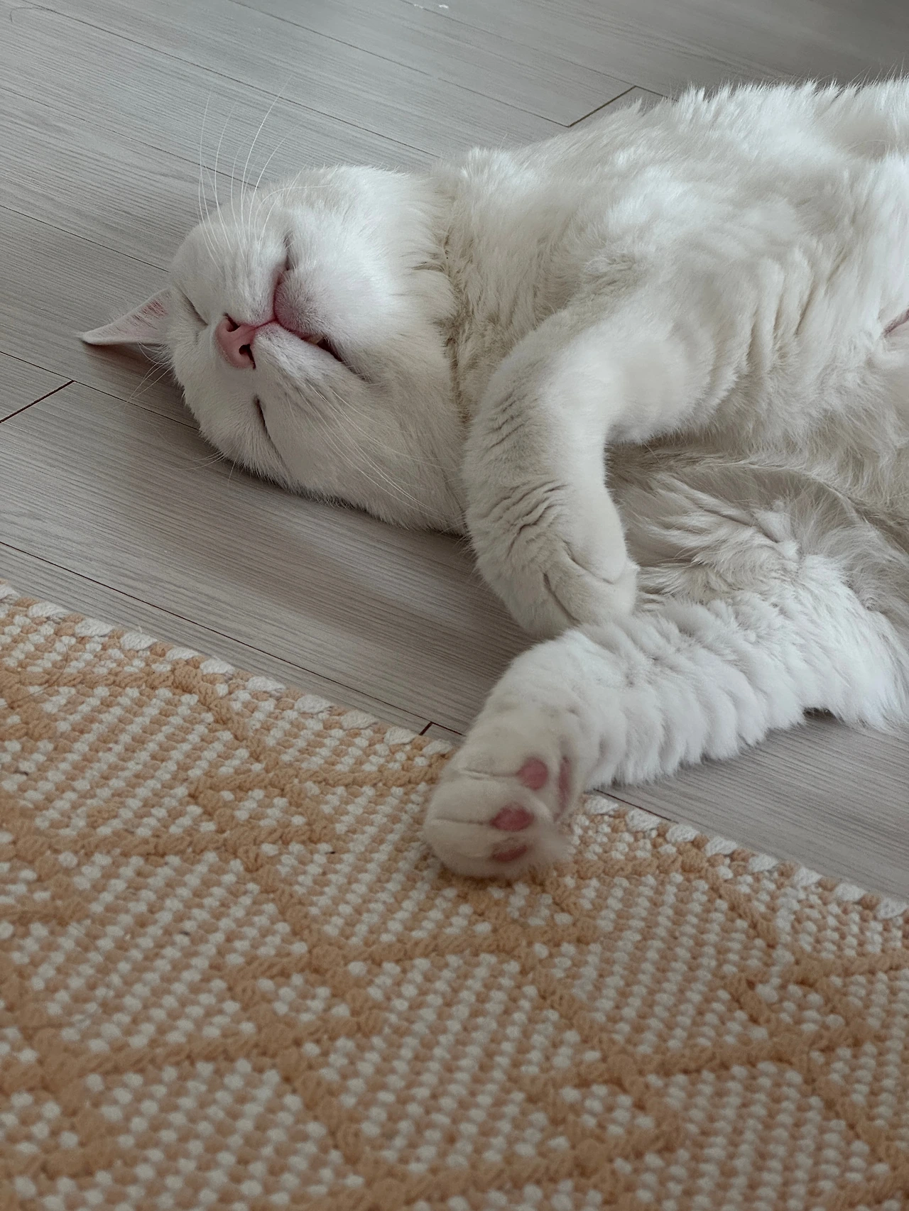 꿋꿋한 우리 뚱냥이는 잘 이겨내 주었고 4~5일이 되었을 즈음 따끈한 바닥에 누워 배를 보여주었다.