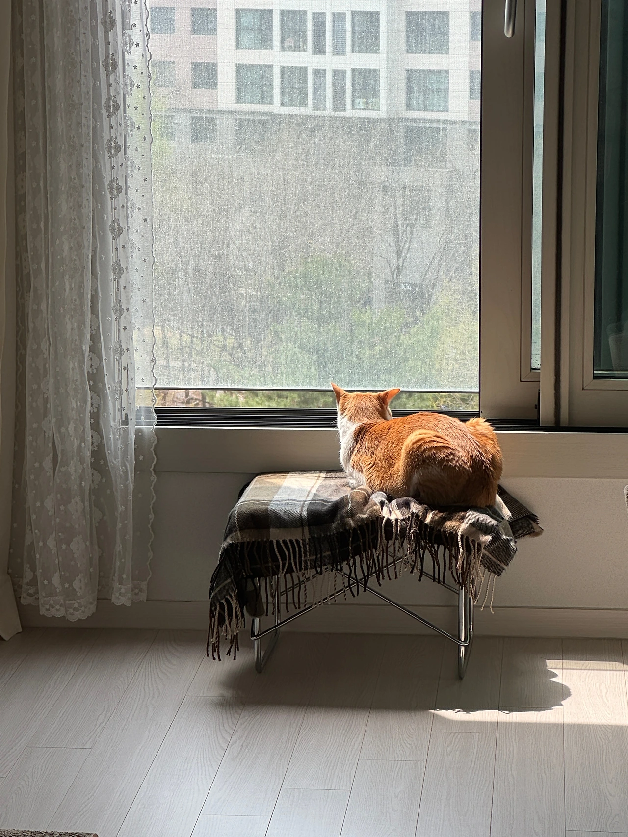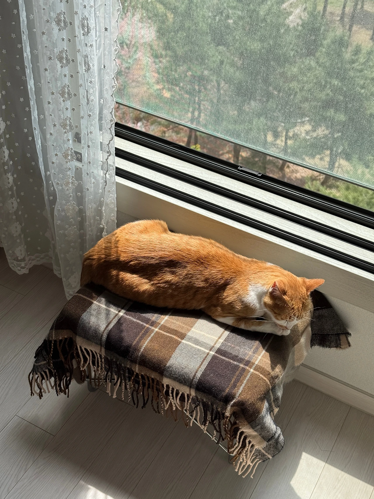 베란다를 열어두고 공간을 마련해 주면, 해가 질 때까지 달이는 이곳에서 일광욕과 바람냄새를 즐긴다.