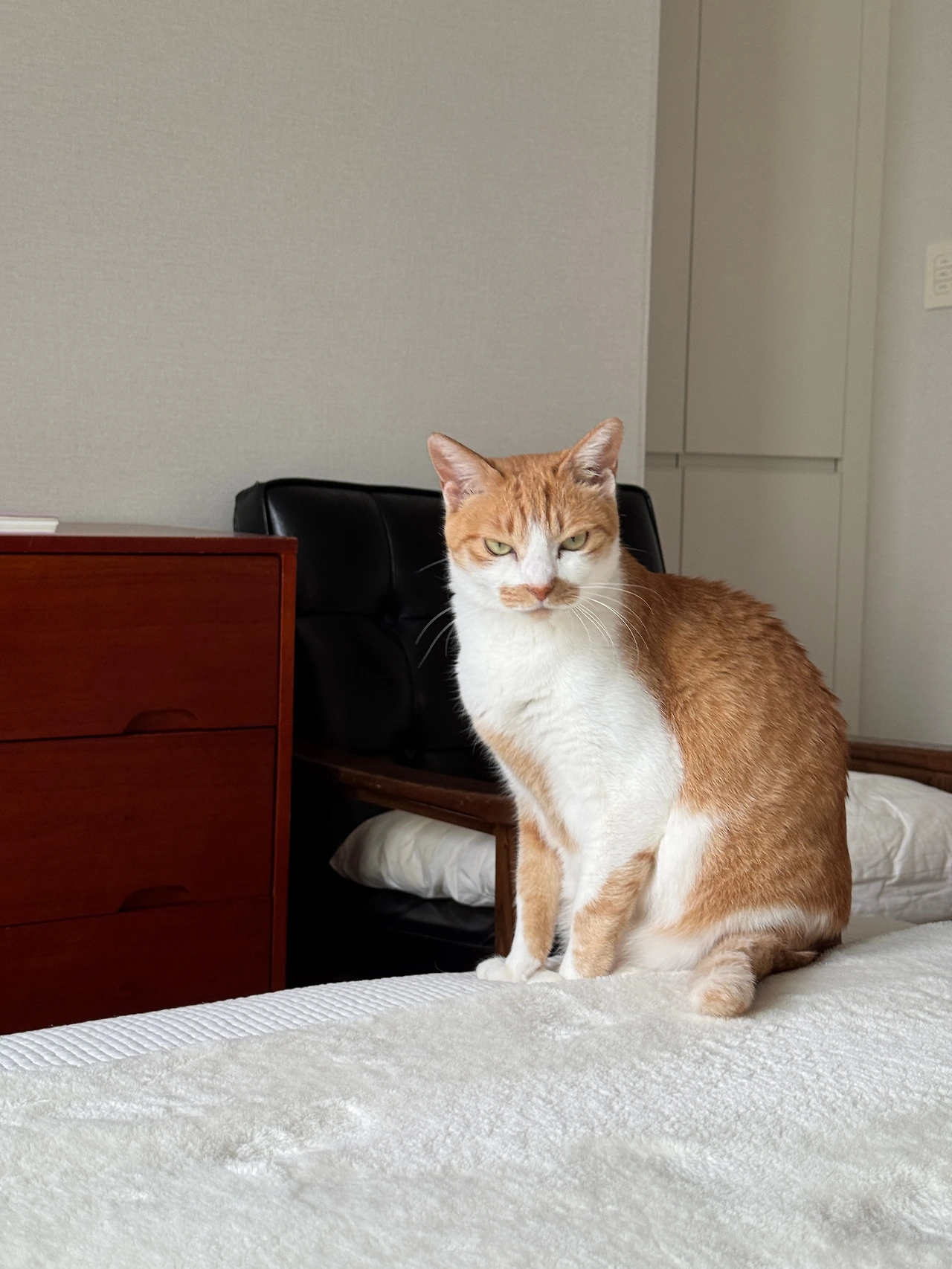 침실 침구를 바꾸는데 달이가 따라 들어왔다.