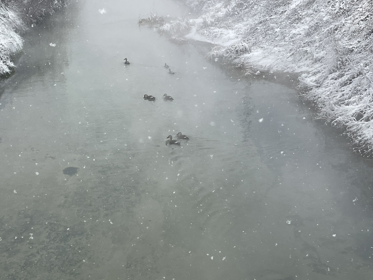 내가 사는 동네 멀지 않은 곳에는 사시사철 모락모락 길이 있다. 좌측에는 논, 우측에는 하천을 품은 길. <철학의 길>과는 다르지만 생명이 꿈틀거리는 그 길에는 이름 모를 철새나 청둥오리들이 유영하고 텅 빈 논에는 거대한 마시멜로가 듬성듬성 빈길을 지키고 있었다. 나는 사계절 중 겨울에 그 길을 자주 찾았다. 새하얀 눈이 어지럽게 흩어지다, 쌓이는 날. 아무도 밟지 않은 길로 힘주어 걷다 보면 흰 솜옷을 입은 크고 작은 나무 사이로 모락모락 김이 피어오르고 작은 소리에도 민감한 철새들이 수풀에 모였다 흩어지기를 반복하는 모습, 그들의 배밀이를 보고 있자면 조그만 물결 따라 기어코 하나가 되고 마는 풍경 속에 내가 있다.