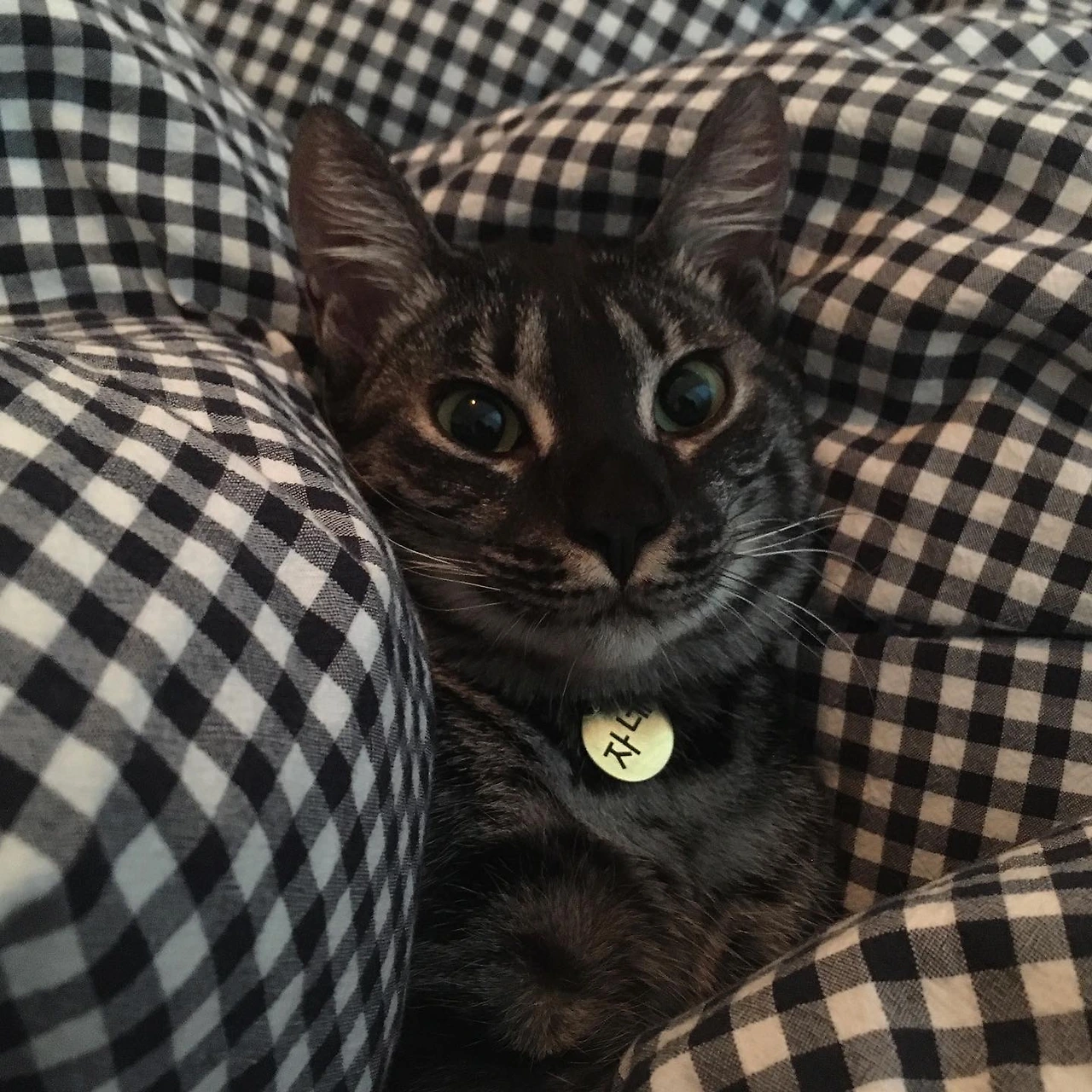 분홍색 담요 사이를 망아지처럼 뛰어다니며 인사를 건네는 내 손 등을 할퀴고 도망간 500그램도 안 되던 미물. 손바닥 안에 쏙 들어올 정도면서 오밀조밀 들어찬 눈, 코, 입 쫑긋한 귀로 내 마음을 헤집어 놓던 솜뭉치. 첫 이유식을 먹던 날 ‘욤욤욤욤’ 의성어를 쓰던 천재 고양이. 스크래처를 좋아해 발톱을 갈고리처럼 만들고, 그 갈고리로 스크래처만큼 좋아했던 나를 할퀴던 맹수. 구석구석 탐험대 총괄본부장, 꼭대기 정복대, 숨바꼭질 마니아. 너와 살며 수없이 겪은 기이한 일이라면 어떻게 뺏는지 미스터리로 남은 에어컨 먼지 필터가 거실 한가운데 널브러져 있던 풍경, 싱크대 하부 장에 있던 사골 봉지를 물어뜯어 주방에 허여멀건 국물을 흩뿌려 둔 일, 노크도 없이 우당탕 점프로 내 방문을 벌컥 열고 위풍당당 입장하던 당돌함, 방망이질과 입질을 멈추지 않아 혼을 내면 반성 없이 되려 눈을 흘기거나 “웽”하며 픽 돌아가던 모습 같은 거, 현관문 앞에서 뭉그적거리면 “우애애애옹오오” 괴성을 지르고, 문을 열면 방바닥을 이리저리 뒹굴다 흥에 겨워 점프해 달려오던 내향인에게 과분했던 외향묘. 낯선 사람도 두루 발아래 둬 집사로 만들던 영민함, 두 시간째 계속되는 사냥놀이에 지칠 줄 모르는 너와 세월 앞에 장사 없다고, 녹초가 되어가는 나를 눈물 쏙 빠지고 기분마저 상하게, 피가 철철 나도록 깨물고 가던 너를 이해할 수 없어. 너는 고양이가 아닐지도 모른다며 울며 친구에게 널 흉봤던 그런 기억. 그렇지만 이름을 부르면 “음-마”하며 도도도 달려와, 신체 어디든 나와 닿길 좋아했던 무릎냥. 지금도 부르면 “음-마”하며, ‘엄마’인지 ‘인마’인지 모를 대꾸로 꼬리를 세우고 뛰어올 것 같은 나의 호랑이.