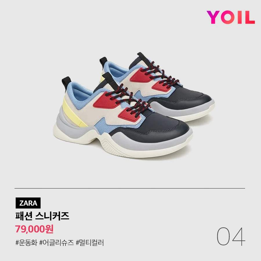 자라처럼 컬러감이 돋보이는 스니커즈를