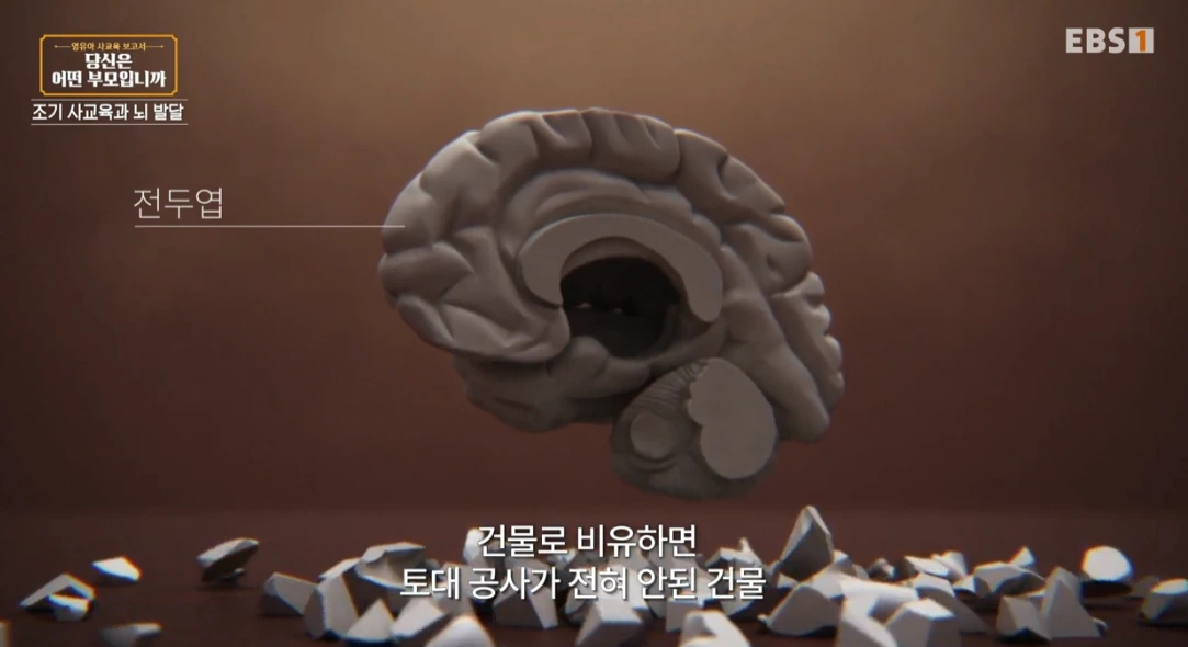 그런데, 변연계가 발달되어야 하는 유아기에 무언가를 암기해야 하거나 오래 앉아있어야 하는 상황이 반복되면 아이들에게는 어떤 일이 일어나게 될까? 필요한 세모 자극이 아닌 적절하지 않은 네모 자극이 반복적으로 아이의 뇌에 들어오게 되면, 변연계의 두 축인 '정서뇌를 담당하는 편도체'와 '기억을 담당하는 해마'가 성숙하지 못하게 되고 이는 결국 이후 전두엽의 발달에도 문제를 일으키게 된다.