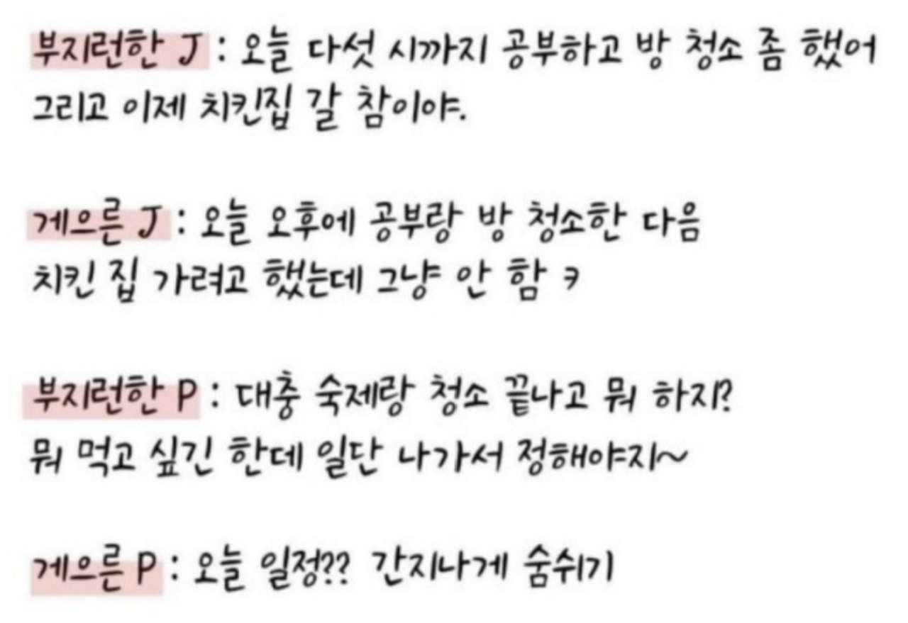 때로는 부지런한 J, 또 어떤 때는 게으른 J의 모습을 보이는 나는 무의식적으로 다음 할 일을 머릿속에 그리는 편이다.