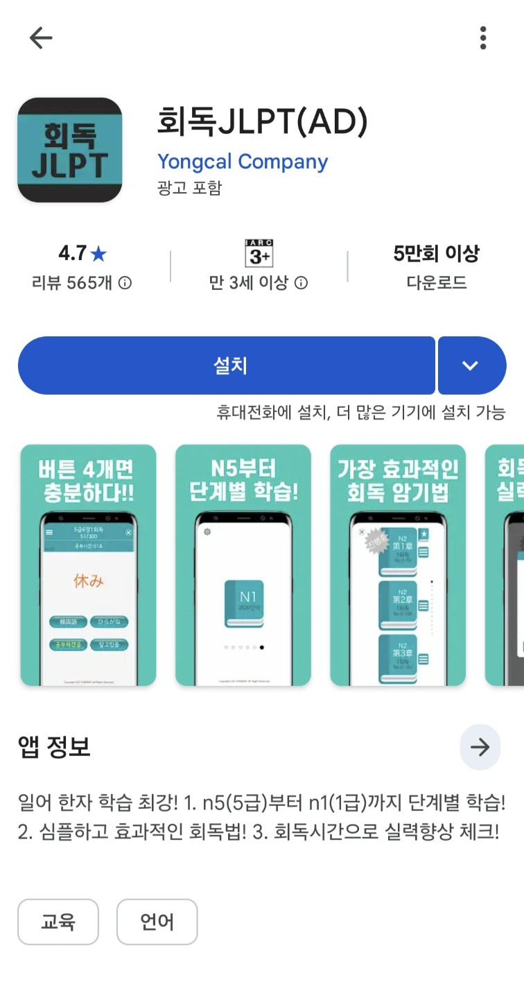 먼저 절대적으로 부족했던 어휘는 '회독 JLPT'라는 앱을 활용했다. N5부터 N1까지 어휘가 나뉘어 있고, 모르는 단어는 '모름', 아는 단어는 '알고 있음'으로 넘기며 외울 때까지 반복하는 단순하고도 확실한 방식이었다. 대학원생이었던 나는 부족한 시간을 쪼개기 위해 출퇴근 버스 안 15분, 혹은 틈날 때마다 이 앱을 켰다. 낮은 레벨부터 차근차근 시작하지 않았던 터라 N3 단어도 함께 외우자는 생각으로 N3(1,100자)와 N2(2,100자)를 동시에 진행했다. 3개월 동안 약 3,200자를 외우는 것은 하루에 대략 18개 이상의 어휘를 암기해야 하는 강행군이었는데, 지금 생각해보니 어지간히 대학원 생활의 도피처가 필요했나 싶다.