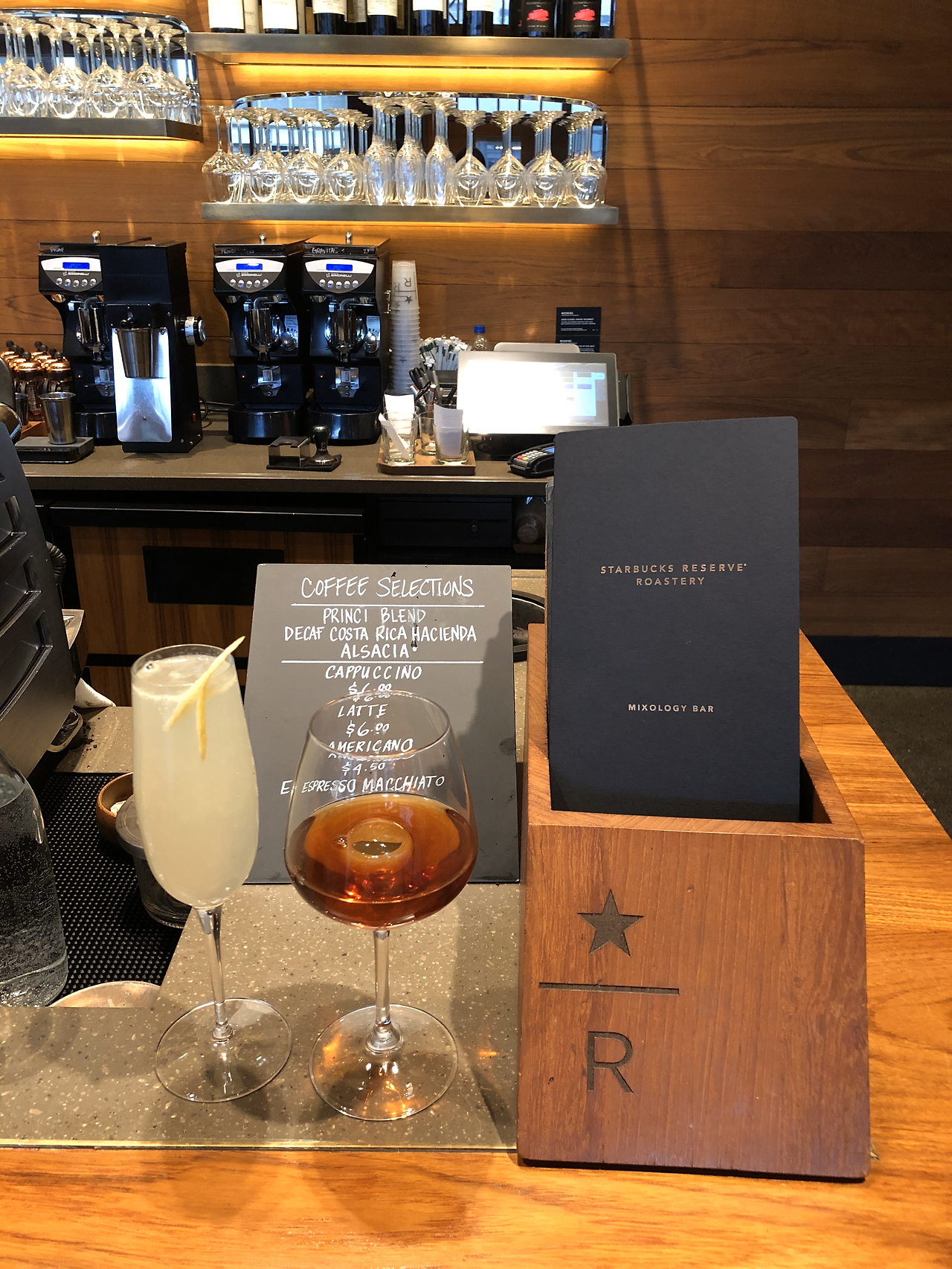 흔히 알고 있는 스타벅스와 달리 칵테일을 마실 수 있다니 나에게는 신선한 충격이였다. 어떤 칵테일이 있는지 궁금해 스타벅스 리저브에있는 바로 갔는데 앉자마자 아이디를 달라고 하는게 아닌가. 한국에서 술집을 가면 얼굴이 아이디여서 따로 아이디가 필요없는데 아이디를 달라고 하니 기분이 좋았다. 물론 나도 알고는 있다. 동양인이 서양인보다 젊어보여 30살이 넘은 나이지만 서양사람들 눈에는 10살이나 어리게 보인다는 것을. 나이가 드니 어리게 보인다는 말과 이쁘다는 말이 왜그렇게 좋은지 모르겠다. 이런 저런 이유로 동양인인 나는 미국 여행을 하다보면 비행기를 탈때 외에도 여권이 필요한 경우가 많다. 보통 바나 레스토랑에서 주류를 마시는 경우이긴 하지만 어떤 상황에서 여권이 필요한지 몰라 나는 항상 여권을 가지고다닌다. 스타벅스에서 여권이 필요할꺼라 생각은 못했지만 늘 가지고 다니다 보니 쉽게 바를 이용할 수 있었다. 커피와 술이 잘어울릴지 몰랐는데 생각보다 너무 잘어울려서 좋았다.