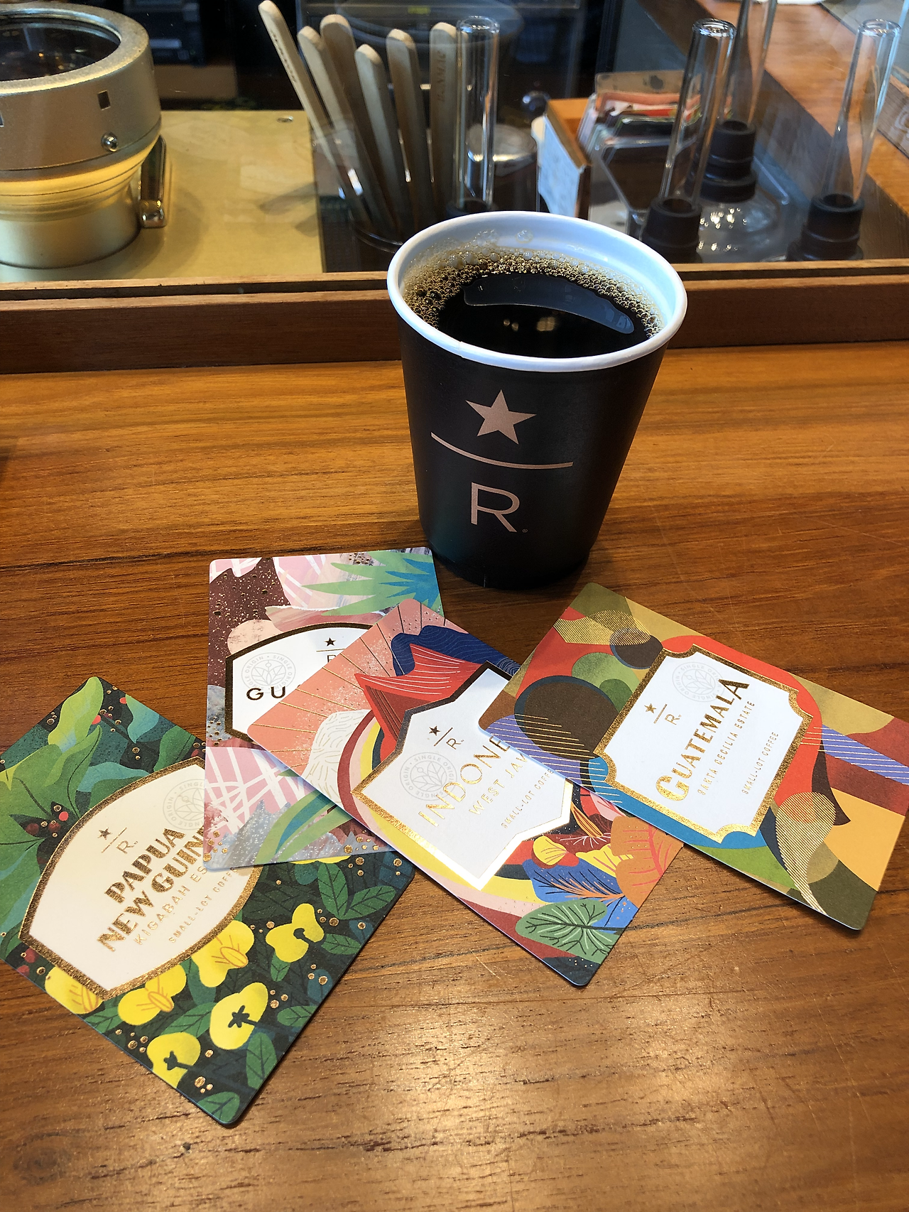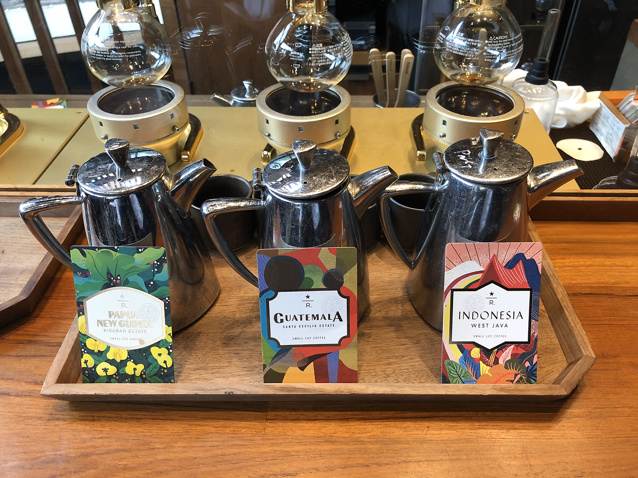 그날 저녁, 스타벅스 리저브에서 살까 말까 고민했던 컵이 계속 생각이 났다. 안사고 그냥가면 두고두고 생각날꺼 같아 캐피톨힐을 갔다가 다음날 다시 스타벅스 리저브를 찾아갔다. 고민했던 컵도 사고 커피도 마실까싶어 갔는데 커알못인 나는 뭘 어떤걸 주문해야될지 몰라 고민하다가 신기한 추출방법이 있어서 마시려고 바에 앉았는데 그것이 바로 사이폰커피였다. 여러 종류의 원두를 직접 고를 수 있었는데 도통 뭔지 몰라 직원 추천을 받아 주문을 했는데 어마무시한 양의 커피가 나오는게 아닌가. 원두 3가지를 고르라고 할때 알아봤어야 되는데 내가 앉기 바로 전에 있던 사람들이 마신 커피 잔이 너무 작아 나도 당연 같은 잔에 줄꺼라고 생각했는데 주전자로 나오는게 아닌가. 직원 실수로 원두를 잘못 갈아 하나더 만들어 주시는 바람에 어마무시한 양의 커피를 마신다고 힘이 들었다. 비록 양이 너무 많아 거의 다 마시지 못하고 내가 좋아하는 커피하나만 투고해서 왔어야 되었지만 색다른 추출방법을 볼 수 있고 여러 종류의 원두의 맛을 볼 수 있어서 좋은 경험이였다.