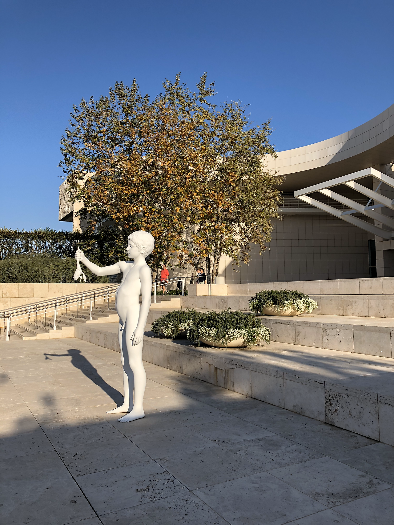 최대한 싼 가격에 가겠다고 빙빙 둘러 갔더니 출발지부터 게티 센터까지 한 시간 넘게 걸렸다. 주차장에서 내려 게티 센터까지 가려면 셔틀 트레인을 타야 되는데 무료로 이용할 수 있었다. 지인들 주려고 산 기념품들이 너무 많았는데 셔틀 트레인 타기 전에 보관할 수 있었어 좋았다. 게티 센터는 무료로 관람할 수 있어 미술을 좋아하는 사람들이 구경하기에 너무 좋았던 거 같다. 생각보다 넓어 늦게 도착한 나는 다 둘러보지 못할 거 같아 한 전시관만 돌아보고 게티 센터 주변을 둘러보기로 했다. 게티 센터 풍경 또한 미술 작품과 같았다. 게티 센터 입구의 예술품을 시작으로 너무 이쁘게 꾸며놓은 게티 센터의 풍경을 구경하는데 많은 시간이 걸렸던 거 같다. 언젠가 다시 오게 된다면 아침부터 시작해 하루 종일 게티 센터를 구경하고 싶다. 미술에 미짜도 모르는데 말이다.