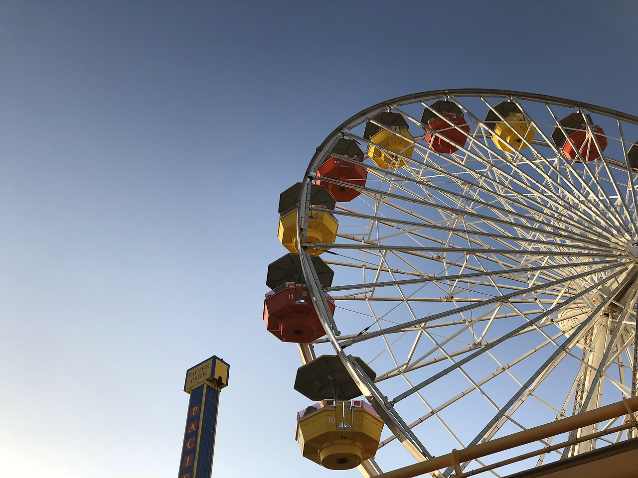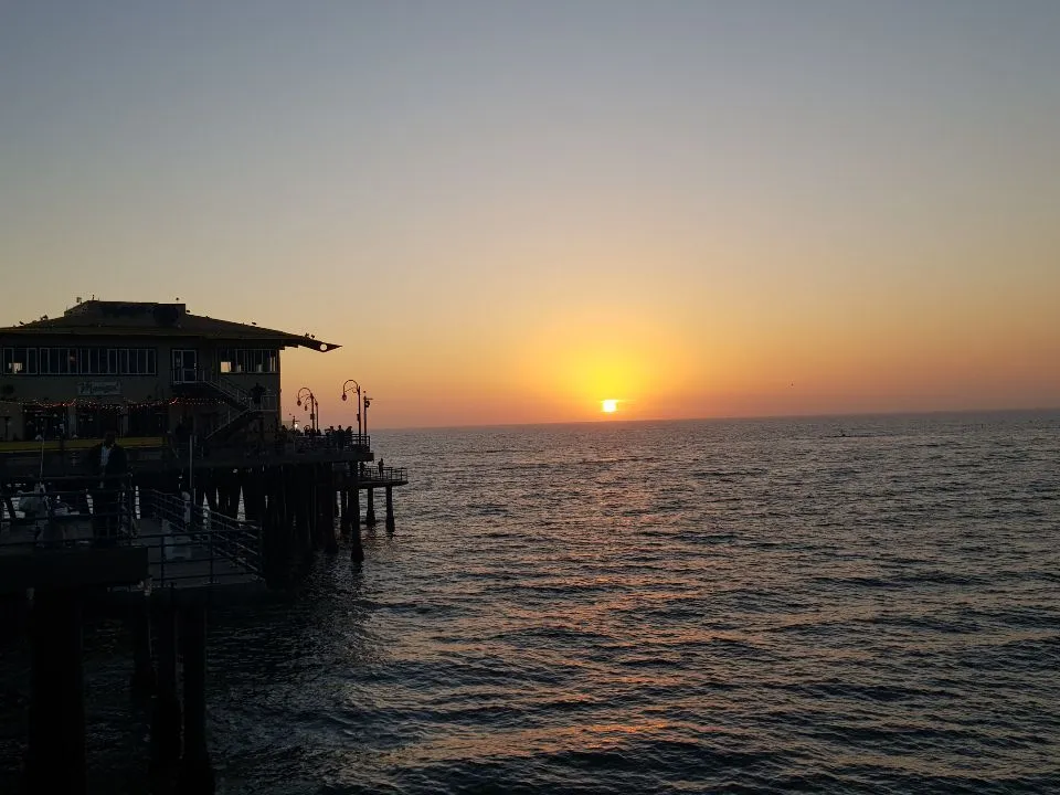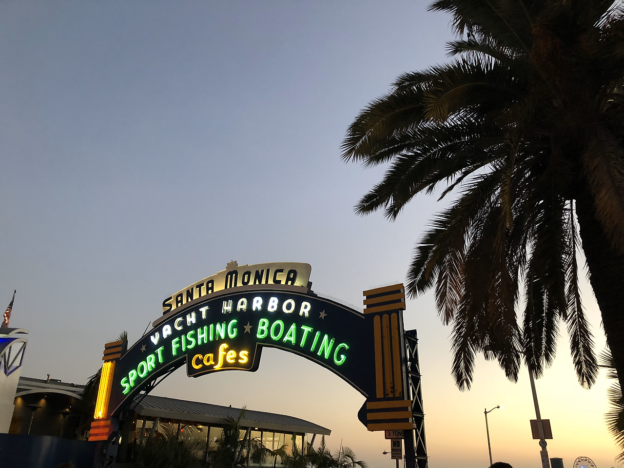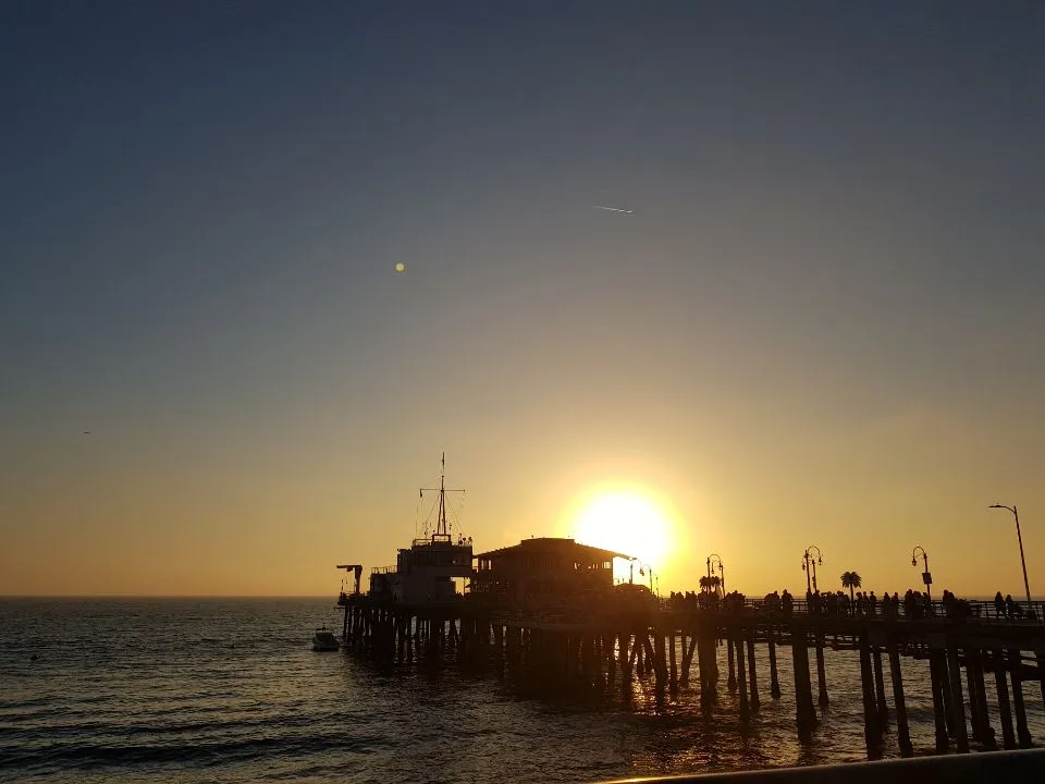 핑크빛 노을을 볼 수 있는 LA, 조금 더 특별하게 보고 싶어 산타모니카 비치에서 노을을 보기로 했다. 베니스 비치와 산타모니카 비치는 서로 연결이 되어 있는데 걸어가기엔 조금 거리가 있는 거 같아 우버를 타고 이동했다. 산타모니카 비치는 베니스 비치와 다른 매력이 있는 곳이었다. 산타모니카 비치에 있는 벤치에 자리 잡고 노을이 지기를 기다리며 책을 읽고 있었는데 너무 추운 10월의 LA 날씨 때문에 다 포기하고 집에 가고 싶었다. 멀리까지 왔으니 조금만 참자는 생각으로 노을이 지길 기다렸는데 자리를 잘못 잡은 나는 해가 반대쪽에서 지고 있다는 사실을 늦게 알아채 바닷속 안으로 서서히 들어가고 있는 해를 겨우 맞이할 수 있었다. 사람들이 왜 노을 명소로 산타모니카를 이야기하는지 알 수 있었다. 조금 흐린 날씨 탓에 제대로 된 핑크빛 노을은 아니었지만 산타모니카 비치와 어우러진 노을은 너무 매력적이었다. 조금 더 많은 시간을 보내고 싶었지만 다음날 아침 일찍 일정이 있었던 난 다시 오기를 기약하며 산타모니카 비치를 떠났다.