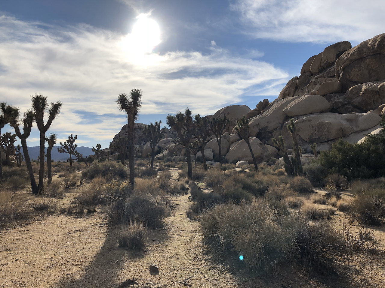 차를 타고 한참을 달려 조슈아트리 국립공원에 도착했다. 해를 따라 고개를 드는 해바라기와 같이 하늘은 향해 솟아있는 나무들이 푸른 하늘과 잘 조화를 이루고 있었다. 해지기 전에 도착한 우리는 조슈아트리 국립공원을 다니며 특이하게 생긴 바위들을 찾아다녔다. 컴퍼스 운동화를 신고 이 바위 저 바위 튀어 다니는 내 모습을 보고 가이드님께서 놀랐을 정도로 나는 신이 났었다. 해질녘에는 노을 보기 좋은 장소에 미리 가서 노을을 구경하며 깜깜한 밤이 되길 기다렸다. 밤이 깊어가고 드디어 내가 그토록 원했던 별 볼 시간이 다가왔다.