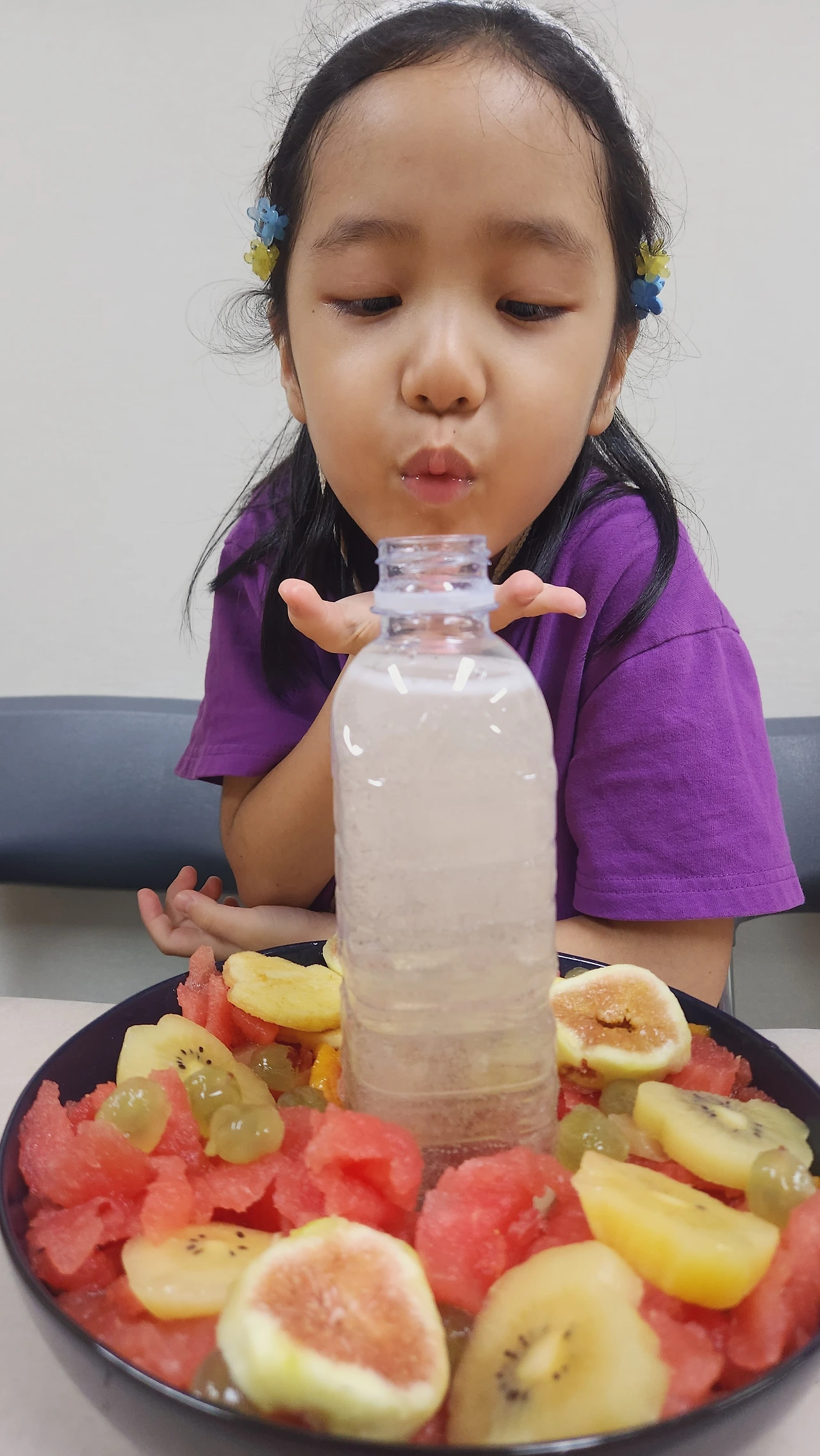 병원에서 나와, 아이들과 독후활동 삼아 요새 엄마표 과학 놀이 수박화채로 SNS에서 유행(?)인 사이다 ×멘토스 화채를 만들었다.