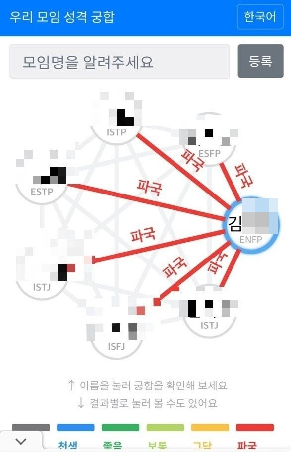 재미 삼아한 것이지만 나를 중심으로 한 관계 모두 '파국'이라는 빨간 글씨가 나온 결과에 기쁘진 않았다. 심히 당황스러웠다. 가족끼리도 결과가 이쯤 되면 사회에서의 나는 '사회부적응자' 즈음돼야 하는 걸까.