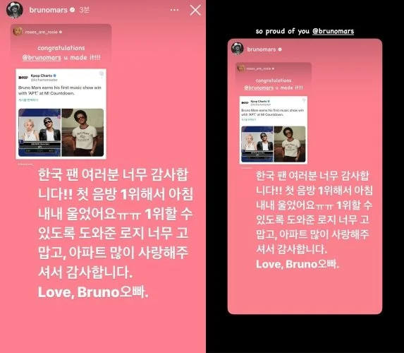 걸그룹 블랙핑크 멤버 로제가 팝스타 브루노 마스가 함께 부른 신곡 ‘아파트’(APT.) 배경 음악을 깔고 마냥 신나보이기만 한다는 것이었다.